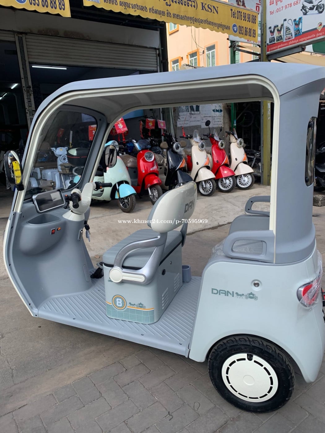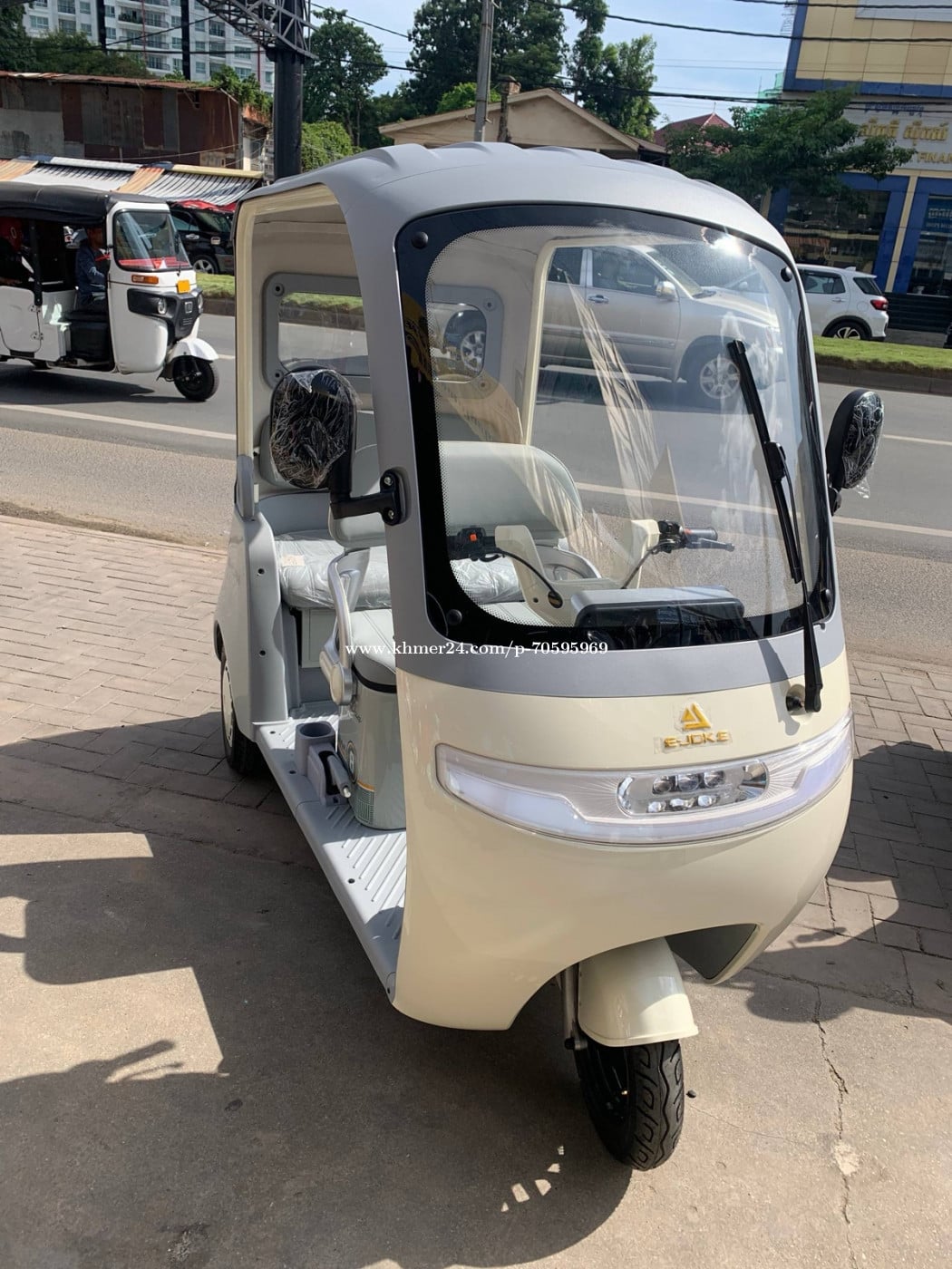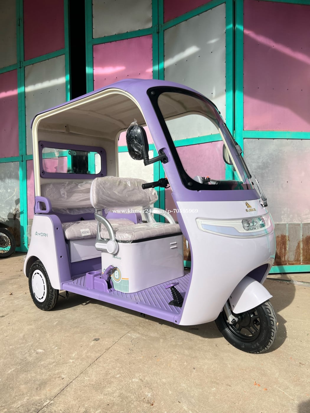 កង់បីអគ្គិសនី ម៉ូដែលថ្មី2025 មានពីរពណ៏ សនឹងស្វាយ កំលាំងអាគុយ72V20ah កំលាំងម៉ូទ័រ800w