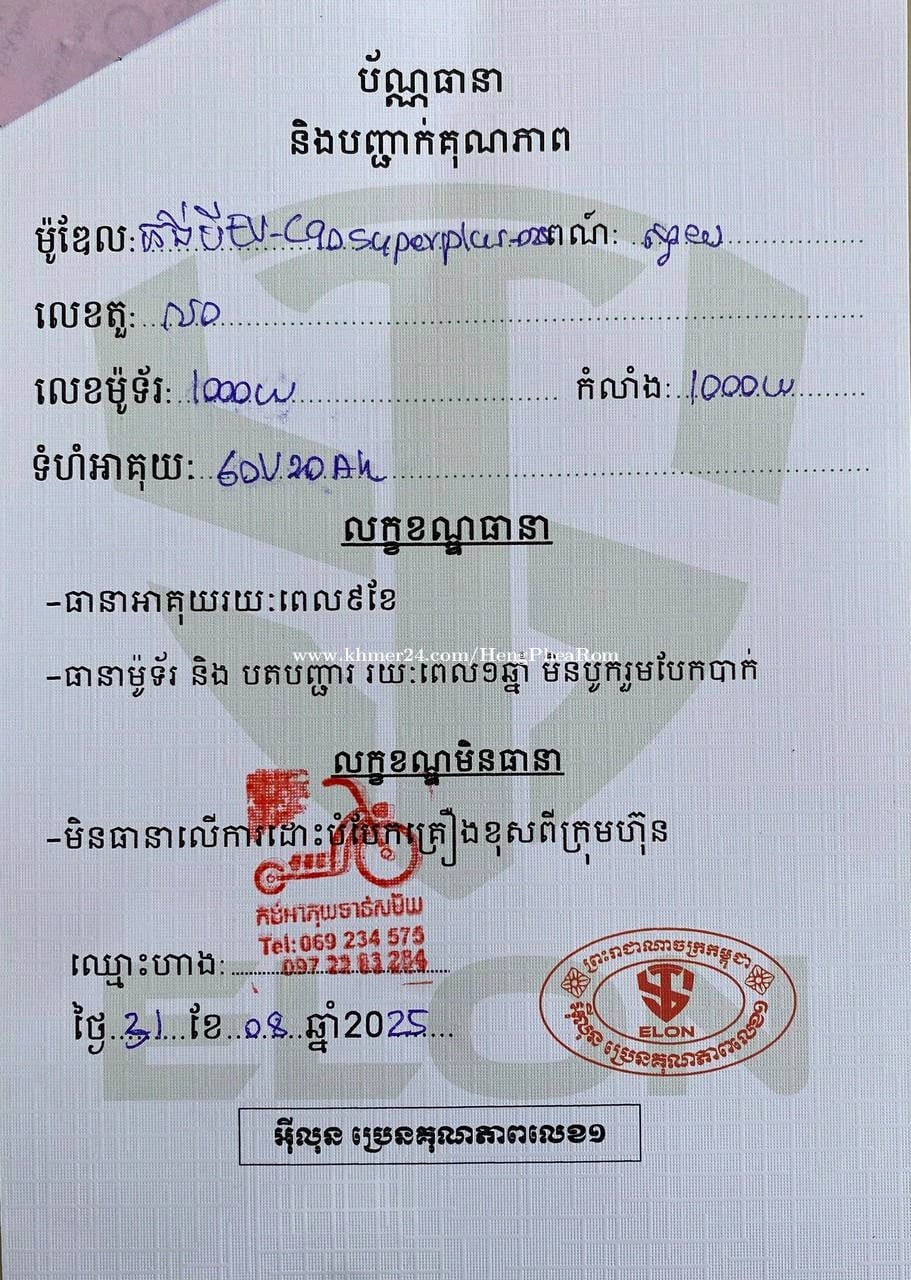 កង់បីអាគុយទិញឲម៉ាក់ គាត់អត់ចេះបើក ចង់លក់វិញ តម្លៃពិសេស ប្រើបានតិច នៅធានាពីក្រុមហ៊ុន អ៊ីលុន លើអាគុយ និង លើម៉ូទ័រ