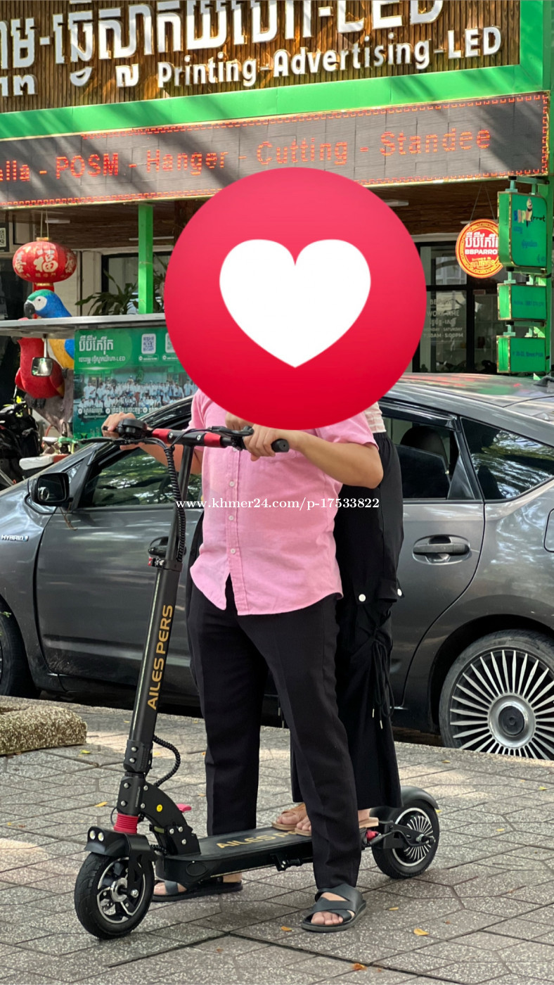 ទិញថ្មី 350$ លក់វិញ 300$ នៅថ្មី ជិតបាន 4»5 ដង! ទើបសាកបាន 1 ដង! អត់មានពេលជិះ ចង់លក់វិញ! ល្បឿន 30km/h ( មាន ៣ កម្រិត) សាកម្តង ជិះបាន 45km ពេលយប់មានភ្លើងទៀត! អាចបត់ទុកបាន ទីតាំង ប៉េងហួត បឹងស្នោរ!