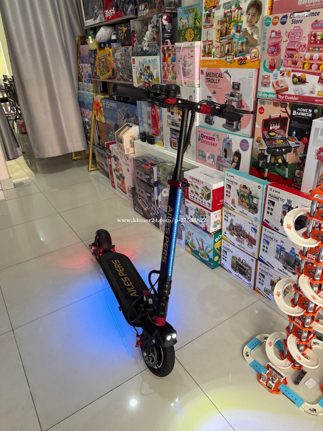 ទិញថ្មី 350$ លក់វិញ 250$ នៅថ្មី ជិតបាន 4»5 ដង! ទើបសាកបាន 1 ដង! អត់មានពេលជិះ ចង់លក់វិញ! ល្បឿន 30km/h ( មាន ៣ កម្រិត) សាកម្តង ជិះបាន 45km ពេលយប់មានភ្លើងទៀត! អាចបត់ទុកបាន ទីតាំង ប៉េងហួត បឹងស្នោរ!