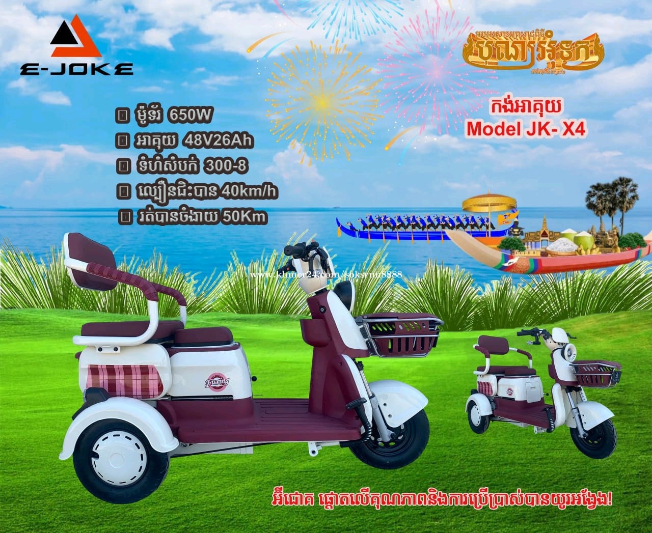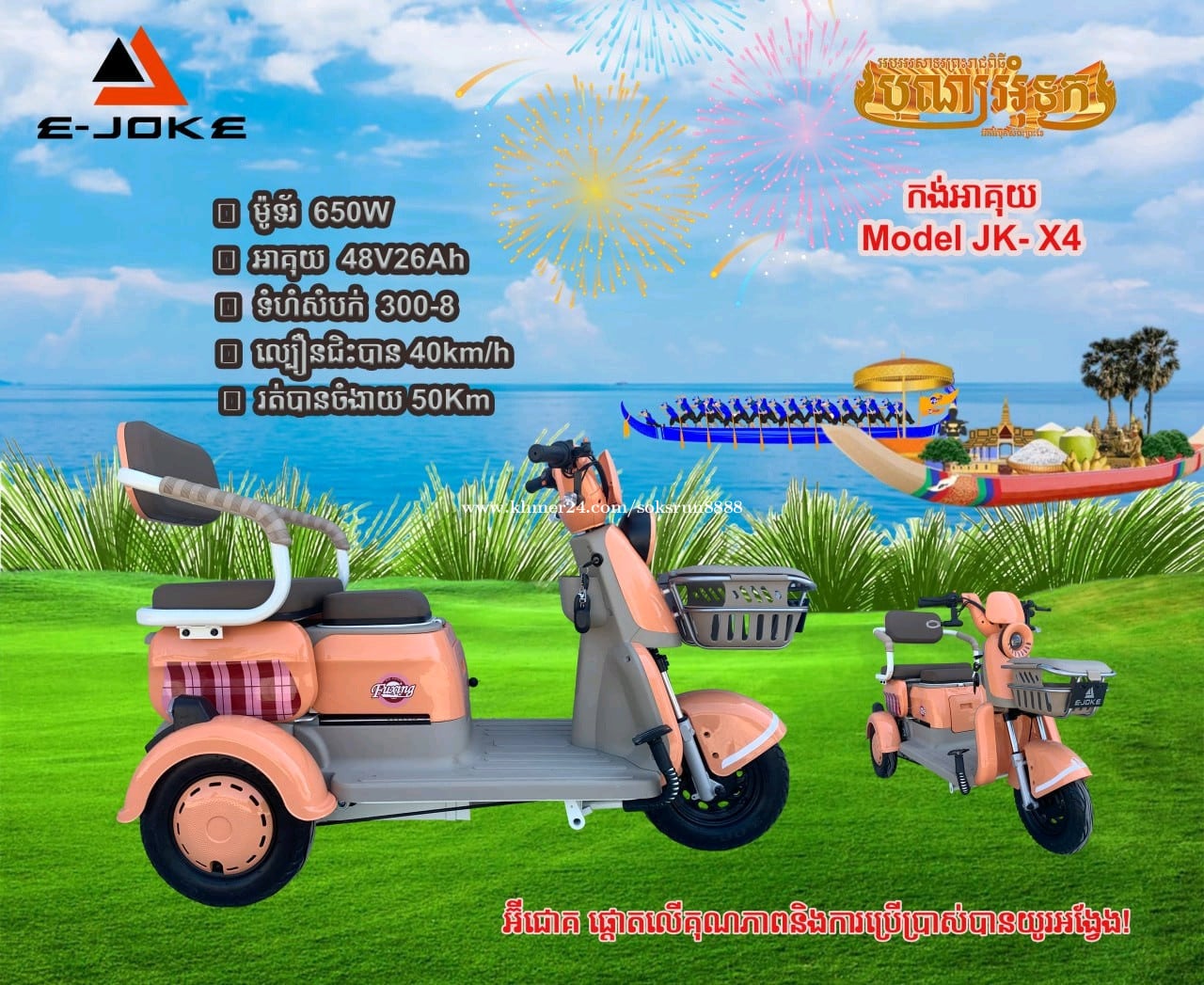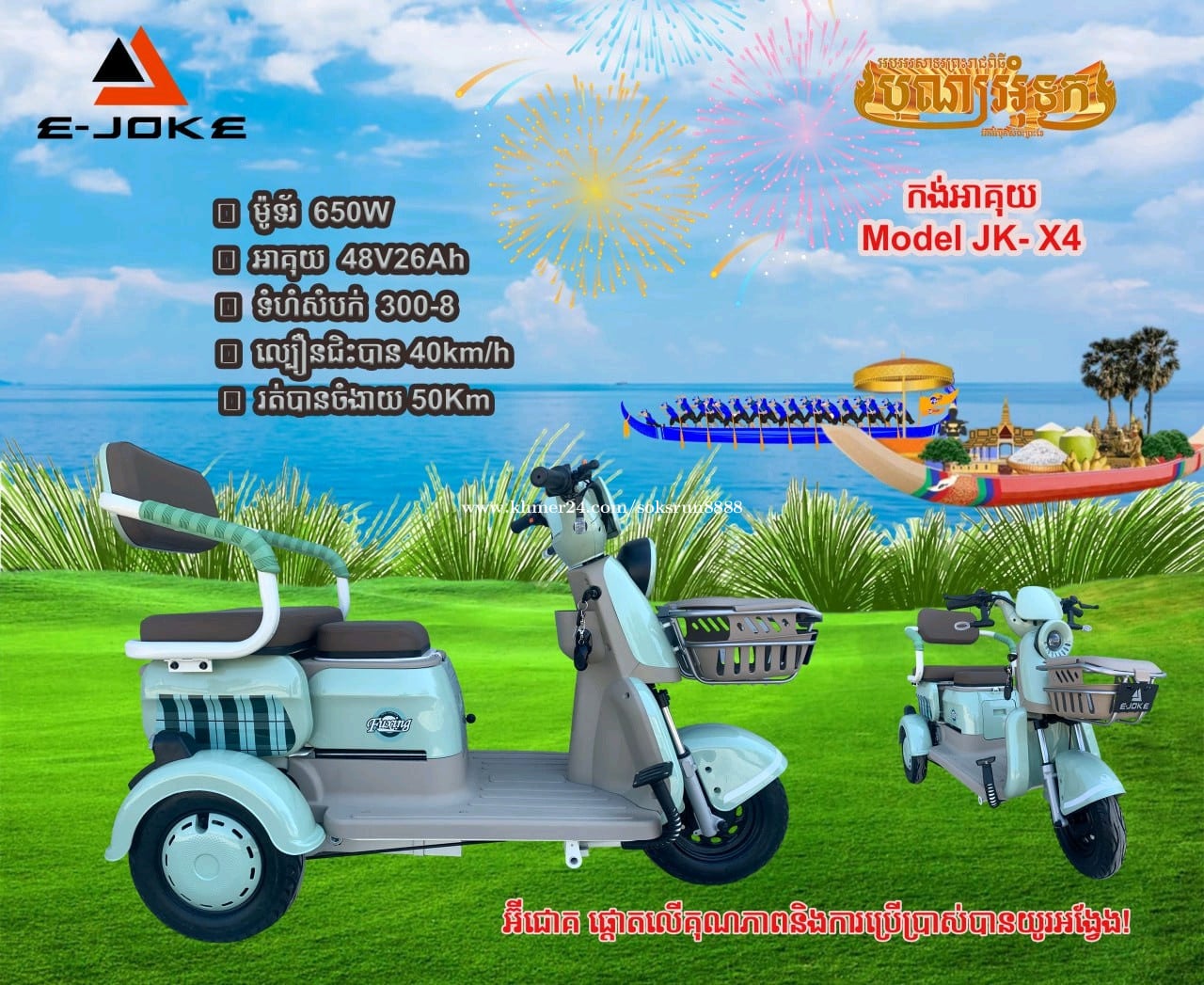 សួស្ដីសង្ក្រាន្ដឆ្នាំថ្មី ២០២៥ ពីកង់អាគុយអ៊ីជោគ Model Jk-X4 💥💥មាន៤ពណ៍ ស្រលាញ់ពណ៍ណាខ្លះកក់ទុកមុនបានចា៎ 😍🥰 Model Jk-X4 👉ម៉ូទ័រ650W 👉អាគុយ48V20ah 👉សំបក់300-8 👉ល្បឿន40KM/H 👉រត់ចំងាយ50kM 👉អាចផ្ទុកទំងន់បាន250KG 👉មានឃ្លុបដាក់ឥវ៉ាន់ធំទូលាយ 👉ទឹកថ្នាំភ្លឺរលោងស្អាត 👉ចង្កៀងគុជភ្លឺច្បាស់ល្អ 👉ប្រភេទបូមប្រេងដែលអាចប្រេីបានគ្រប់សណ្ឋានភាពផ្លូវ👍 សម្រាប់បងៗអត់ទាន់ស្គាល់ទីតាំង អាចមើលបាន😍🫰 📌សំរាប់ព័ត៌មានលំអិត ☎️010898xxxClick To Call/099898xxxClick To Call 🇰🇭 telegram 098699xxxClick To Call 🇰🇭
