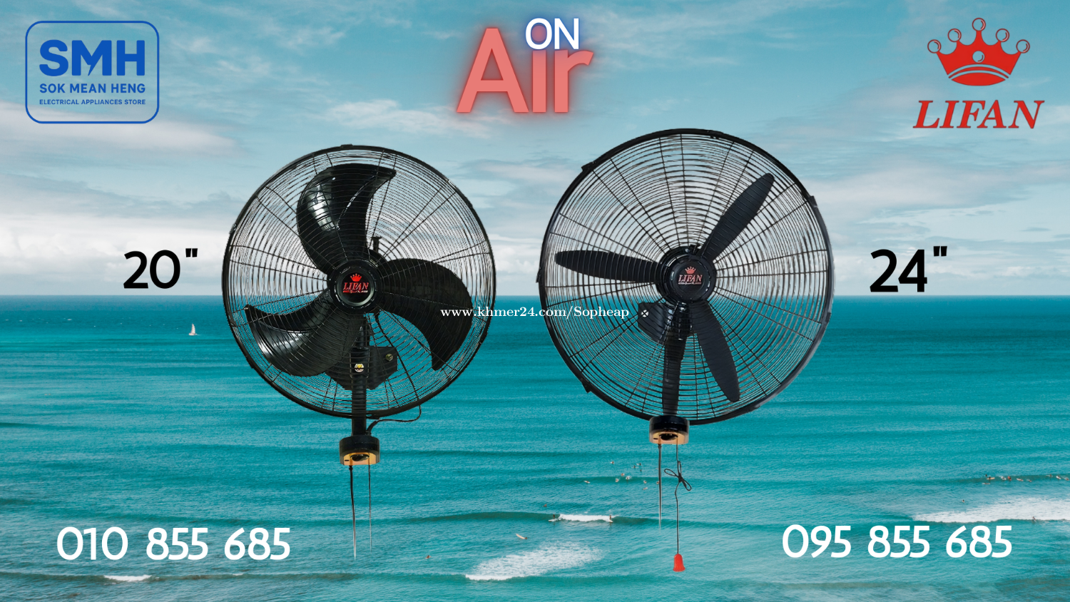 កង្ហារជញ្ជាំង_ស្លាបដែក Lifan Industrial Wall Fan _ 20" / 24” (New) . - ផលិតផលនាំចេញគុណភាពខ្ពស់ វៀតណាម - High Quality Export Products of Vietnam . 1. កង្ហារជញ្ជាំង_ស្លាបដែក Lifan T-20CN Industrial Wall Fan _ 20" - Size / Weight: 20" / 50cm _ 6.6Kg - Power / Vol: 100W / 220V ~ 50Hz - Meas: 57 x 57 x 17 cm * តំលៃ / Price: 69$ . 2. កង្ហារជញ្ជាំង_ស្លាបដែក Lifan T-24CN Industrial Wall Fan _ 24" - Size / Weight: 24" / 60cm _ 7.6Kg - Power / Vol: 110W / 220V ~ 50Hz - Meas: 68 x 67 x 29 cm * តំលៃ / Price: 89$ . SMH / សុខ មាន ហេង / Sok Mean Heng ហាងលក់គ្រឿងប្រើប្រាស់អគ្គិសនី / Electrical Appliances Store . ✅ ហាងផ្លូវការដែលមានការទទួលស្គាល់ត្រឹមត្រូវដោយ Khmer24 / Verified Business Account by Khmer24 💯 ទទួលបានទំនុកចិត្តខ្ពស់ពីអតិថិជនជាច្រើន / Trusted by Real Customers. 📍 មានទីតាំងច្បាស់លាស់ និងពិតប្រាកដនៅភ្នំពេញ / We have a clear and real/verified location in Phnom Penh. . Phone / Telegram (សេវាកម្មរហ័ស / Fast Service): Smart: 010855xxxClick To Call / https://t.me/Annsopheap Cellcard: 095855xxxClick To Call / http://t.me/Annsopheap095 . អាស័យដ្ឋាន / Address: No. 392, MaoTseToung Blvd. (St. 245), Phnom Penh. (Near P Jolie Beauty Center) . ផែនទី / Maps: https://www.google.com/maps?q=11.55595844757693,104.90165490657091&15 . #កង្ហារ #ជញ្ជាំង #ស្លាបដែក #វៀតណាម #គ្រឿងអគ្គីសនី #គ្រឿងប្រើប្រាស់អគ្គិសនី #Lifan #Fan #Wall #Industrial #Hanging #T20CN #T24CN #Vietnam #SMH #Appliances #ApplianceStore #HomeAppaliance #ElectricAppliances #ElectricalAppliances #Promotion #Discount #Save #Free #New