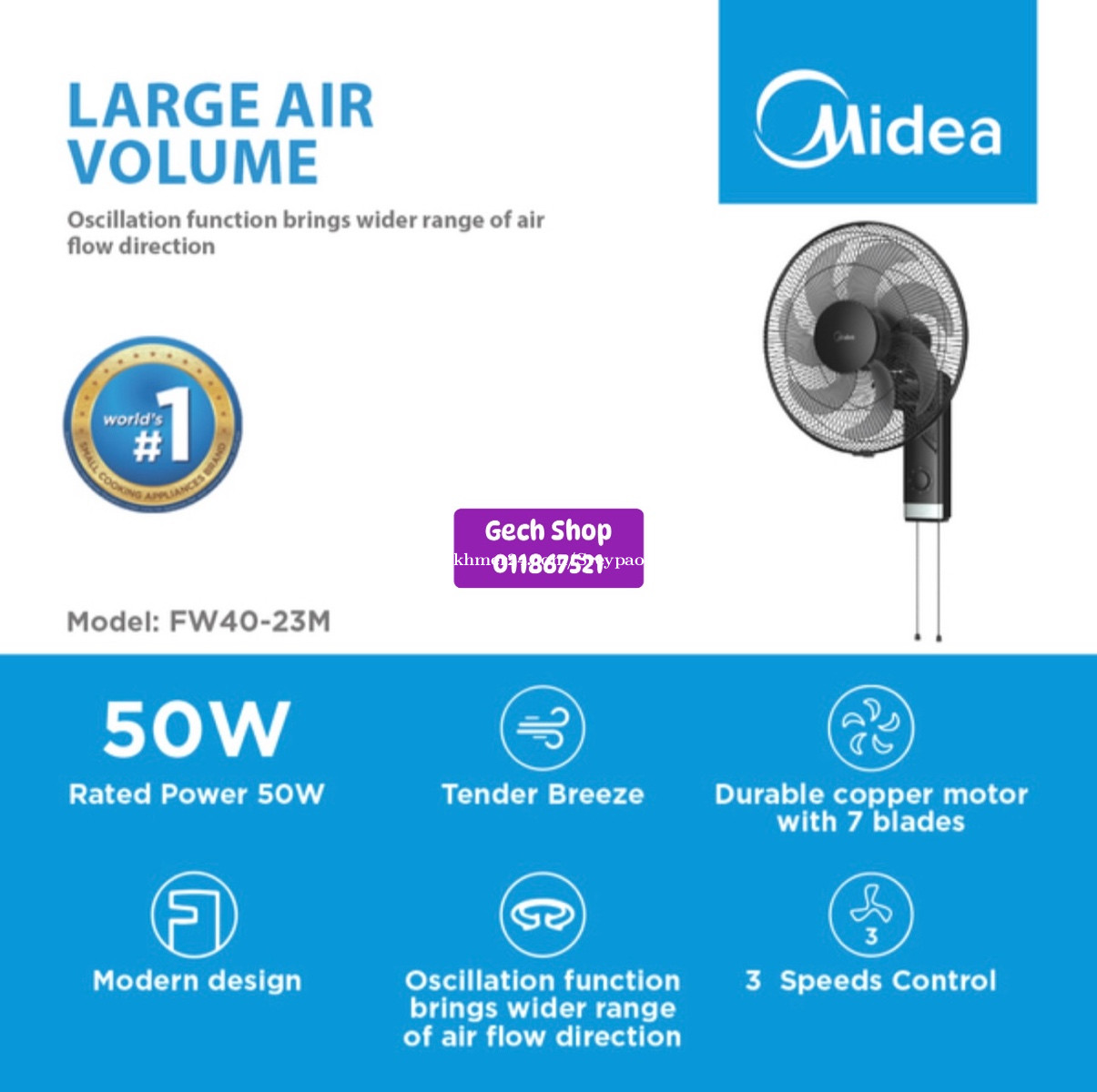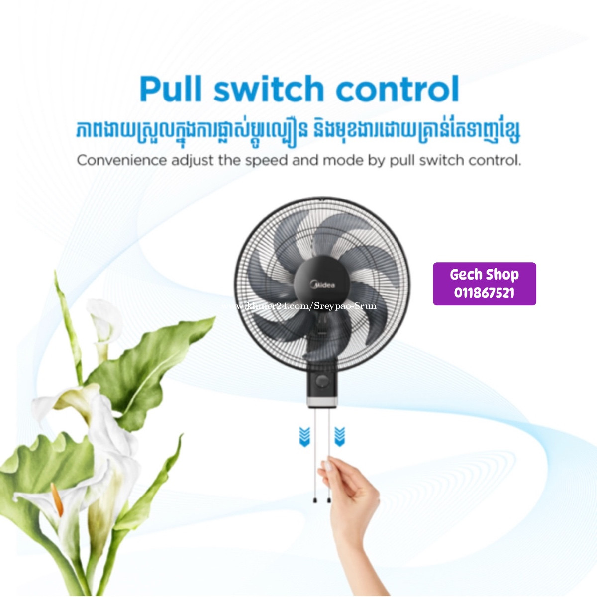កង្ហារជាប់ជញ្ជាំង Midea Wall Fan FW40-23M ទំហំ១៦អុីង មានភាពងាយស្រួលក្នុងការផ្លាស់ប្ដូរល្បឿន និងមុខងារដោយប្រេីខ្សែ សម្លេងស្ងាត់ល្អ មានល្បឿនខ្យល់៣កម្រិតមានធានារយៈពេល១ឆ្នាំ មានលក់នៅហាង Gech Shop ធានាផលិតផលក្រុមហ៊ុន តម្លៃសមរម្យ Tel: 011867xxxClick To Call ➡️📥📩 https://t.me/GechShop_PaoPao #កង្ហារ #កង្ហារជញ្ជាំង #wallfan #Midea #MideaHomeChallenge