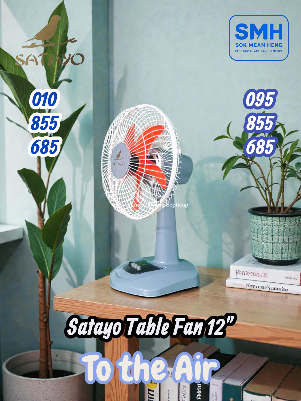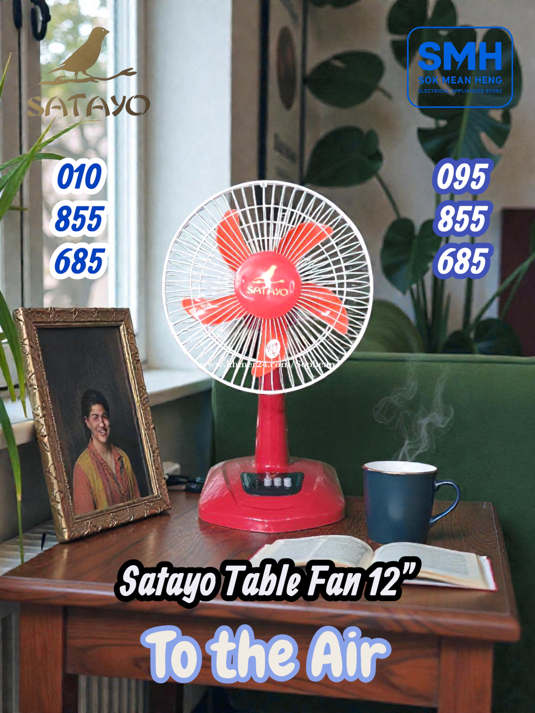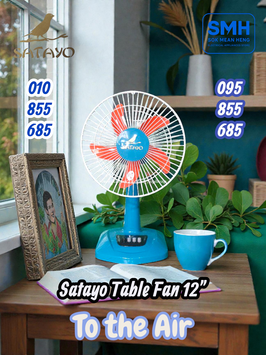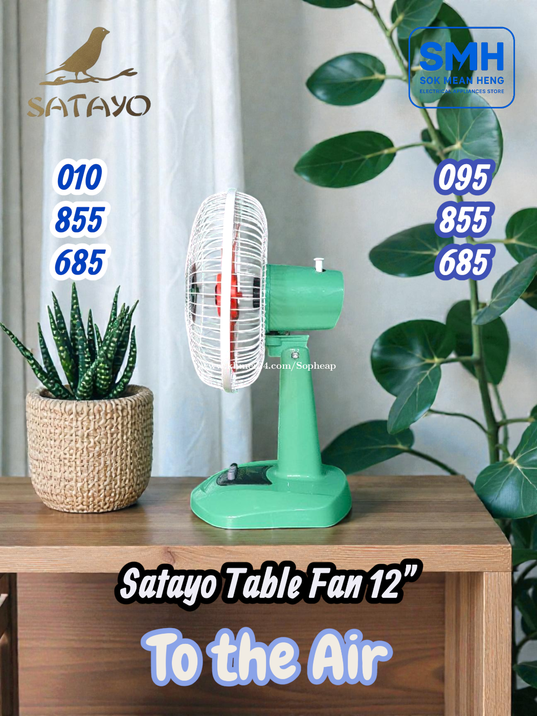 កង្ហារលើតុ Satayo SC-012 Table Fan _ 12" (New) . - Size: 12" / 30cm - Power: 24W / 220V-50Hz - Color: Red / Blue / Green / Navy / Grey (Noted: Some colors are available; some colors are not) . * តំលៃ / Price: 10$ . SMH / សុខ មាន ហេង / Sok Mean Heng ហាងលក់គ្រឿងប្រើប្រាស់អគ្គិសនី / Electrical Appliances Store . Phone / Telegram (សេវាកម្មរហ័ស / Fast Service): Smart: 010855xxxClick To Call / https://t.me/Annsopheap Cellcard: 095855xxxClick To Call / http://t.me/Annsopheap095 . អាស័យដ្ឋាន / Address: No. 392, MaoTseToung Blvd. (St. 245), Phnom Penh. (Near P Jolie Beauty Center) . ផែនទី / Maps: https://www.google.com/maps?q=11.55595844757693,104.90165490657091&15 . #SMH #កង្ហារ #Fan #Satayo