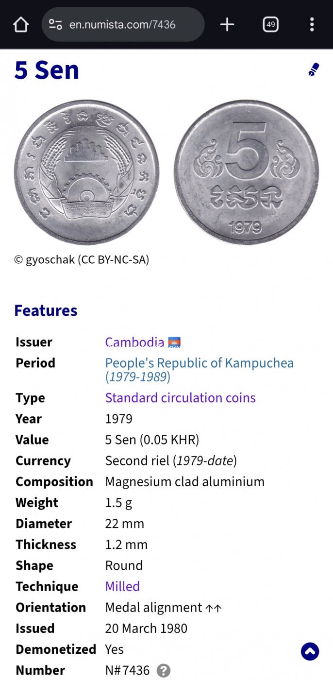 កាសសម័យសាធារណរដ្ឋប្រជាមានិតកម្ពុជា 1979 -តម្លៃ 5 សេន -អាលុយមីញ៉ូម -សភាពថ្មី. Telegram : 092598xxxClick To Call