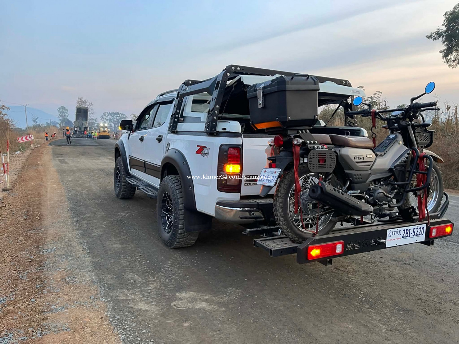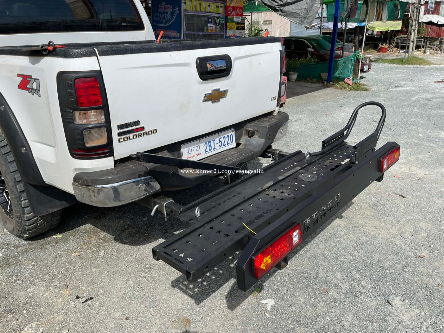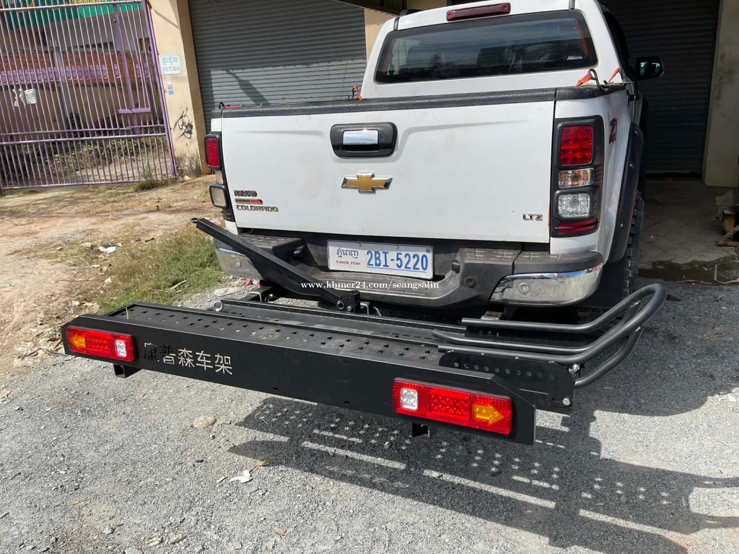 កាងដឹកម៉ូតូ មានភ្លើងស្តុបក្រោយ តាមស្តង់ដា ប្រើជើងដោត3 ដើម មាំល្អ
