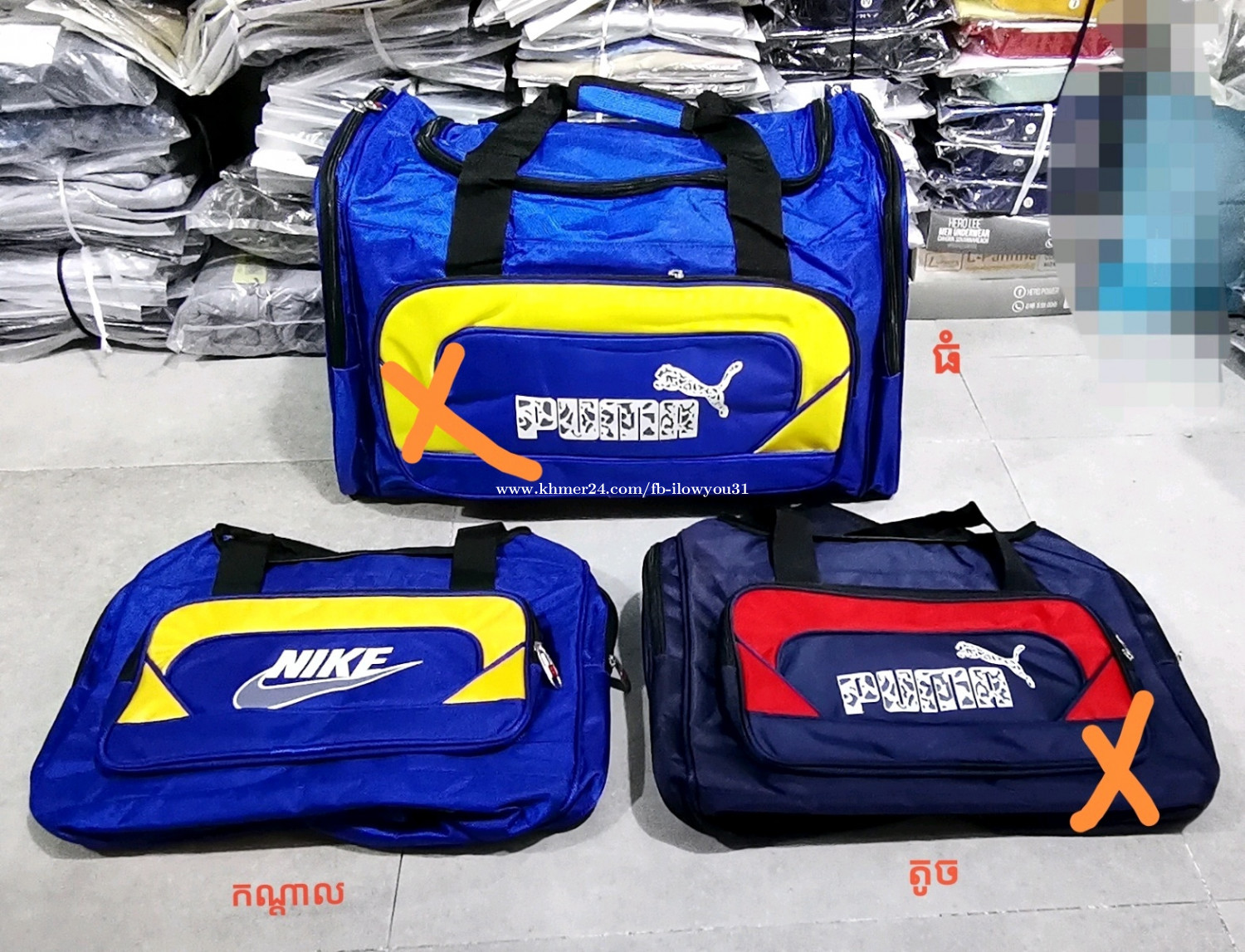 កាបូបស្ពាយ សាកាដូ កាបូបខោអាវ ប្រុសស្រី ស្អាតៗ ពេញនិយម Tel : 087652xxxClick To Call Telegram : 087652xxxClick To Call WhatsApp : 087652xxxClick To Call Facebook : Zhi Lii ទីតាំង : បុរីពិភពថ្មីចំការដូង2 តូបលេខ : 62,63,78 ផ្លូវលេខ2 ផ្សារពិភពថ្មី2 ដឹកជញ្ជូនជូនបងប្អូនក្នុងក្រុងភ្នំពេញនិងតាមខេត្តនានា ឬអាចមកទិញផ្ទាល់ក៏បាន តំលៃតាមម៉ូត សាច់