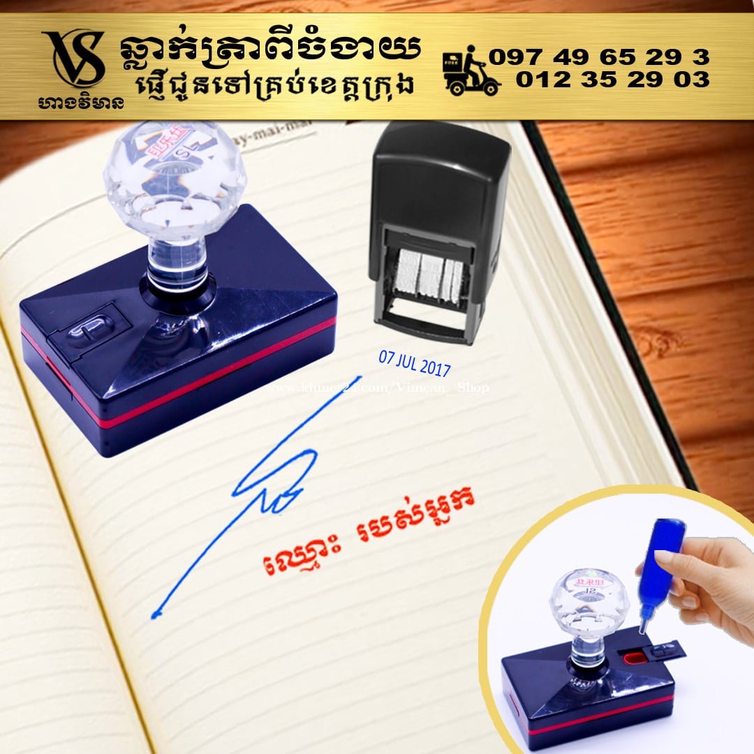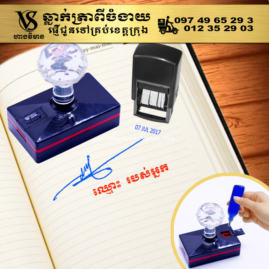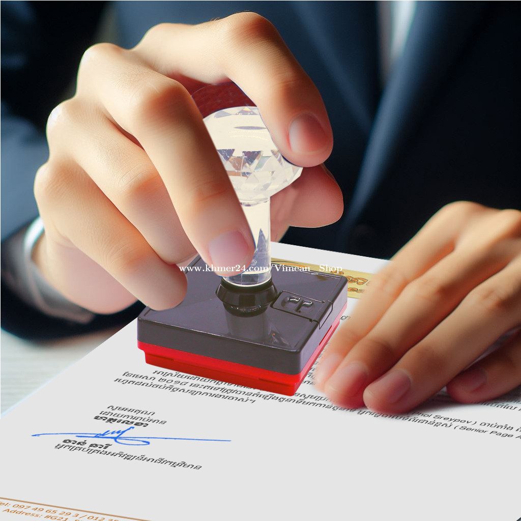 ការប្រើត្រាហត្ថលេខាពិតជាងាយស្រួលសំរាប់ការងារដែលមានឯកសារច្រើនមែនទេ? ការប្រើត្រាហត្ថលេខាគឺងាយស្រួលមិនគួរឱ្យជឿសម្រាប់អ្នកដែលគ្រប់គ្រងឯកសារជាច្រើន។ វាជួយសម្រួលដល់ដំណើរការនៃការចុះហត្ថលេខាលើឯកសារ ដោយជួយសន្សំសំចៃពេលវេលា និងការខិតខំប្រឹងប្រែងរបស់អ្នក ជាពិសេសនៅពេលដោះស្រាយកិច្ចការដដែលៗ។ សូមទស្សនាវីដេអូ៖ https://www.facebook.com/share/v/1Bymwa5V6s/ ឆ្លាក់ត្រាពីចំងាយនិងផ្ញើជូនគ្រប់ខេត្តក្រុង។ សាកសួរឬកុម៉្មង់តាមMessenger៖ http://m.me/stampmaking Tel : 089318xxxClick To Call (Cellcard) / 0882461xxxClick To Call (Metfone) / 093728xxxClick To Call (Smart) ផ្ទះG21 ផ្លូវGoody សង្កាត់ទឹកថ្លា ខណ្ឌសែនសុខ រាជធានីភ្នំពេញ( ក្នុងបូរីនៃផ្សាររតនាផ្លាហ្សា1 ឬ ម្តុំស្ពានអាកាសផ្សារដីហ៊ុយ ) ---------------- #ត្រាហត្ថលេខា #ត្រាសាញ៉េ #Signature ត្រាបោះហត្ថលេខា ហត្ថលេខាត្រា ធ្វើត្រាបោះហត្ថលេខា ផលិតត្រាបោះហត្ថលេខា បោះត្រាហត្ថលេខា ត្រាហត្ថលេខាឯកជន ត្រាហត្ថលេខាក្រុមហ៊ុន ត្រាបោះហត្ថលេខាគ្រប់ប្រភេទ សេវាត្រាបោះហត្ថលេខា ត្រាហត្ថលេខាអត្តសញ្ញាណ