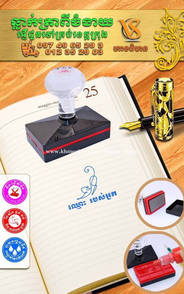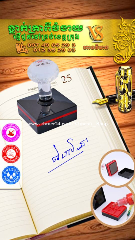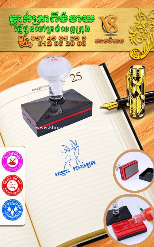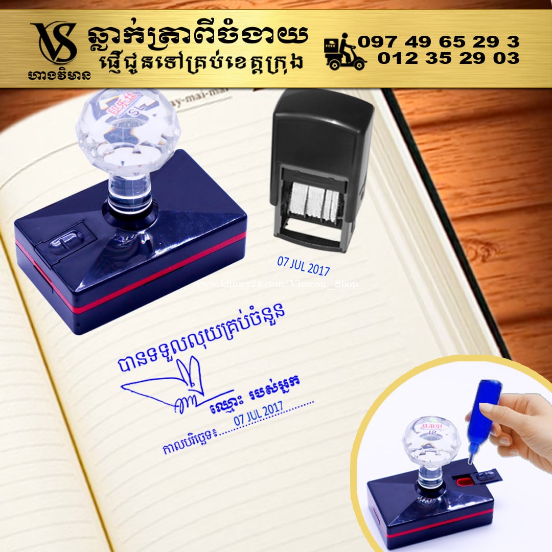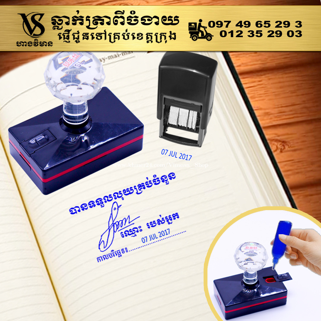 ការប្រើត្រាហត្ថលេខាពិតជាងាយស្រួលសំរាប់ការងារដែលមានឯកសារច្រើនមែនទេ? ការប្រើត្រាហត្ថលេខាគឺងាយស្រួលមិនគួរឱ្យជឿសម្រាប់អ្នកដែលគ្រប់គ្រងឯកសារជាច្រើន។ វាជួយសម្រួលដល់ដំណើរការនៃការចុះហត្ថលេខាលើឯកសារ ដោយជួយសន្សំសំចៃពេលវេលា និងការខិតខំប្រឹងប្រែងរបស់អ្នក ជាពិសេសនៅពេលដោះស្រាយកិច្ចការដដែលៗ។ សូមទស្សនាវីដេអូ៖ https://www.facebook.com/share/v/1Bymwa5V6s/ ឆ្លាក់ត្រាពីចំងាយនិងផ្ញើជូនគ្រប់ខេត្តក្រុង។ សាកសួរឬកុម៉្មង់តាមMessenger៖ http://m.me/stampmaking Tel : 089318xxxClick To Call (Cellcard) / 0882461xxxClick To Call (Metfone) / 093728xxxClick To Call (Smart) ផ្ទះG21 ផ្លូវGoody សង្កាត់ទឹកថ្លា ខណ្ឌសែនសុខ រាជធានីភ្នំពេញ( ក្នុងបូរីនៃផ្សាររតនាផ្លាហ្សា1 ឬ ម្តុំស្ពានអាកាសផ្សារដីហ៊ុយ ) ---------------- #ត្រាហត្ថលេខា #ត្រាសាញ៉េ #Signature ត្រាបោះហត្ថលេខា ហត្ថលេខាត្រា ធ្វើត្រាបោះហត្ថលេខា ផលិតត្រាបោះហត្ថលេខា បោះត្រាហត្ថលេខា ត្រាហត្ថលេខាឯកជន ត្រាហត្ថលេខាក្រុមហ៊ុន ត្រាបោះហត្ថលេខាគ្រប់ប្រភេទ សេវាត្រាបោះហត្ថលេខា ត្រាហត្ថលេខាអត្តសញ្ញាណ