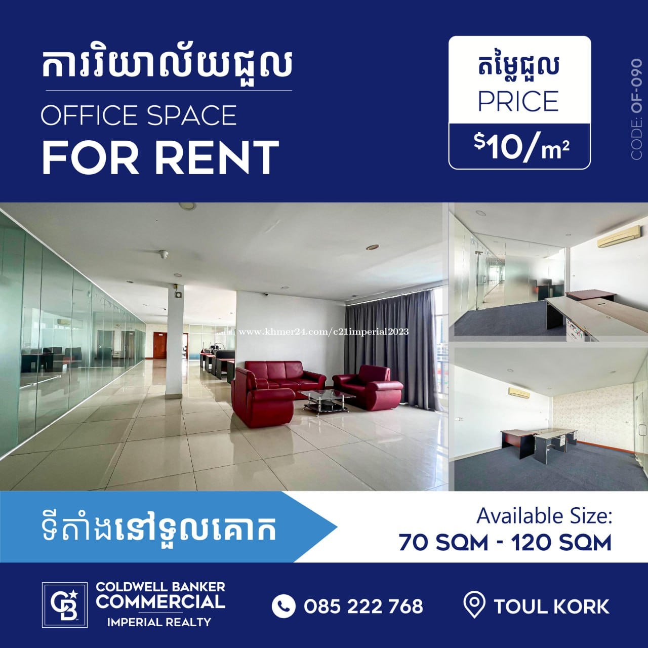 Office Space for rent at TK (OF-090) Available size : 70sqm / 120sqm -Price : 10$/sqm -Floor : 8 th -Management fee : Free -Good location good environment .reasonable rate and surrounding by business, market, restaurant especially located on the main road. ----------- 📥Please feel free to contact us now for more information . ☎️085222xxxClick To Call | 069993xxxClick To Call | 085777xxxClick To Call 🔗Telegram : https://t.me/imperialcomercial 🌐Website : https://imperialrealty.com.kh