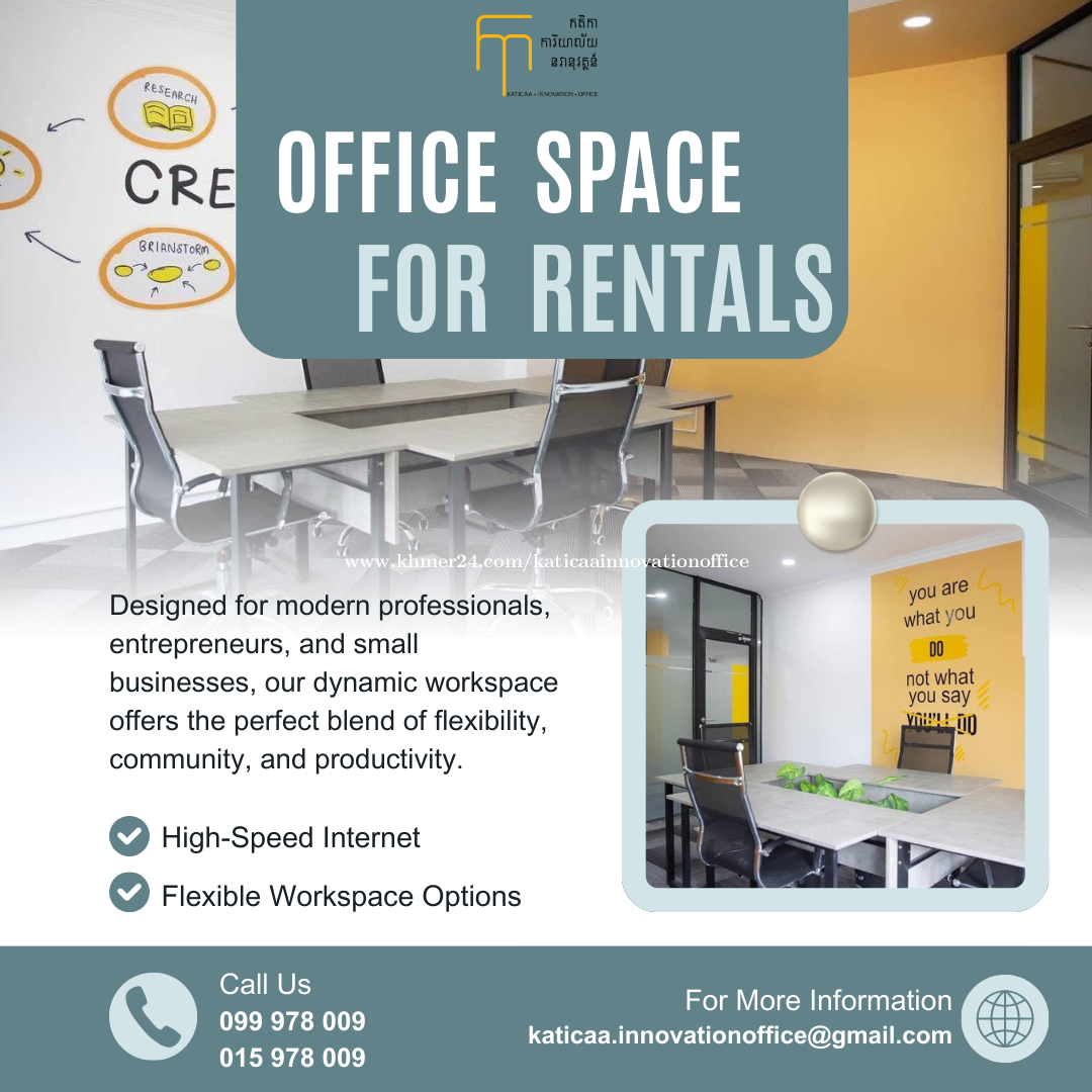 Office Space For Rent at Toul Kork area Katicaa Innovation Officeយើងខ្ញុំមាន -មានបន្ទប់ការិយាល័យច្រើនជម្រេីស តូច ធំ ទៅតាមតម្រូវការ -មានបន្ទប់ប្រជុំ -មានអុីនធឺណេតល្បឿនលឿន -បន្ទប់ឌីស្សាញបែបទាក់ទាញលើសពីកន្លែងធ្វើការទូទៅ និង បរិក្ខារប្រើប្រាស់ (តុ កៅអី) ថ្មី និង ត្រូវបានជ្រើសរើសដើម្បីអោយអ្នកប្រើប្រាស់មានផាសុខភាពទោះជាធ្វើការយូរ ទំហំចាប់ពី 8-36m2 តម្លៃចាប់ពី$189ឡើង កន្លែងធ្វើការបរិយាកាសល្អ ចំណតធំទូលាយ មានទេសភាព360ដឺក្រេ ទីតាំងស្ថិតនៅទីប្រជុំជន (ផ្សារទួលគោក) នៅចាំអីទៀត ទាក់ទងមកយើងខ្ញុំឥលូវនេះសម្រាប់ពត៌មានលម្អិត 📞 099978xxxClick To Call 📥 dm us for more info —————————————————— អាស័យដ្ឋាន: #64, ផ្លូវ586 សង្កាត់បឹងកក់2 ខណ្ឌទួលគោក រាជធានីភ្នំពេញ Katicaa Innovation Office https://maps.app.goo.gl/GP7g7uwaBRnfXHhv8?g_st=ic #katicaa_innovation_office #smartoffice #coworkingspace