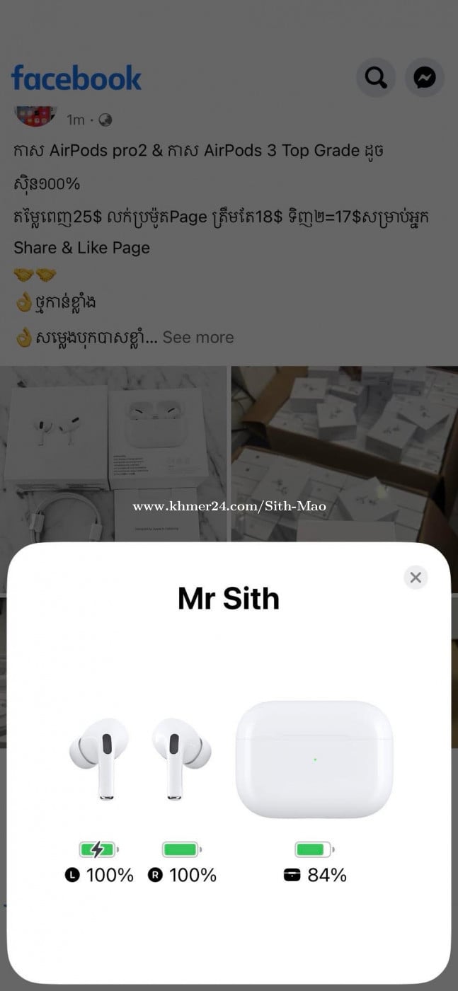 កាស AirPods pro2 & កាស AirPods 4 Top Grade ដូចសុិន99.99% តម្លៃពេញ25$ លក់ ត្រឹមតែ12$ទិញ២=11$ 🤝🤝 👌ថ្មកាន់ខ្លាំង 👌សម្លេងបុកបាសខ្លាំងដូចសុិន99.99% 👌Connect ជាមួយទូរស័ព្ទក៏ដូចសុិនដែរ 👌 មាន GPS (មើលទីតាំងបាន) 👌 អាចប្តូរឈ្មោះកាសបាន 👌 In-Ear senior ពេលដាក់កាសក្នុងត្រចៀកវានឹងចាក់ បទចម្រៀងដោយស្វ័យប្រវត្តិ 👌 Touch sensor (ចុចបញ្ជាលើកាស) 👌 មុខងារ Noise Cancellation សម្រាប់កាត់សម្លេងរំខាន 👌 មាន Serial Code នៅលើកាស 👌 ប្រអប់នឹងរូបរាង ធានាដូចហ្សុីន 100% 👌 ភ្ជាប់បានគ្រប់ទូរស័ព្ទ iOS នឹង Android 👉👉👉 ធានារយះពេលបីខែលើសម្លេងនិងថ្ម បើ មិនបុកបាស់ប្តូរថ្មីជូនវិញ Telegram 0885551xxxClick To Call