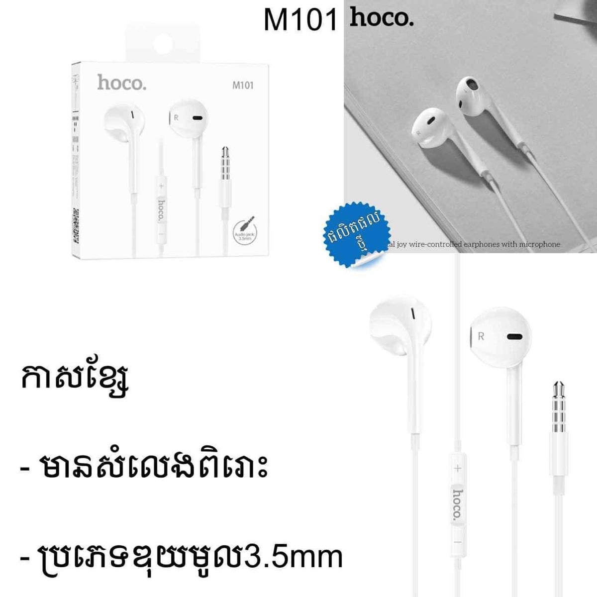 កាស Hoco M101 ឌុយមូល 3.5mm តម្លៃ 7$ សម្លេងបុកបាស សម្លេងពិរោះ 📞016608xxxClick To Call https://t.me/hh_accessories