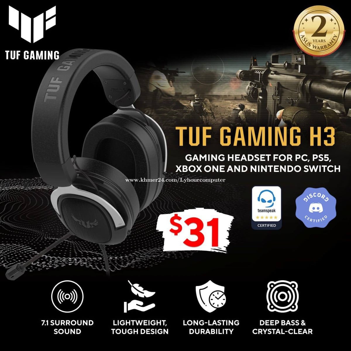 កាសGAMING TUF H3 Original New2025 តម្លៃល្អ39$ ចុះសល់ 31ដុល្លា😍