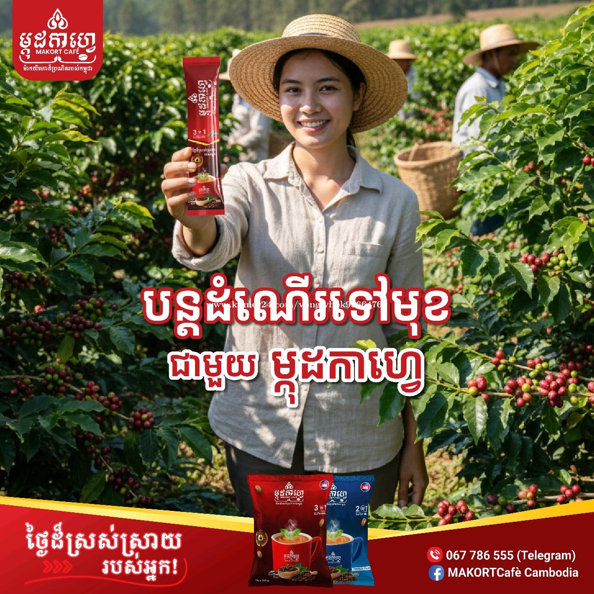 ចាប់ផ្តើមថ្ងៃថ្មីជាមួយ ម្កុដកាហ្វេ🌞☕ (ផលិតផលកូនខ្មែរ១០០%) -------------------------- 📦 កញ្ចប់តូច 🎒 ងាយយកតាមខ្លួន ☕ រសជាតិឆ្ងាញ់ គុណភាពល្អ ⭐តម្លៃសមរម្យ -------------------------- ទំនាក់ទំនងចែកចាយបន្ត៖ ☎️0964141xxxClick To Call ( ផ្នែកលក់ ) ☎️067786xxxClick To Call ☎️0973377xxxClick To Call #morning #coffee #MAKORTCafé #cambodiaproduct #ផលិតផលកូនខ្មែរ