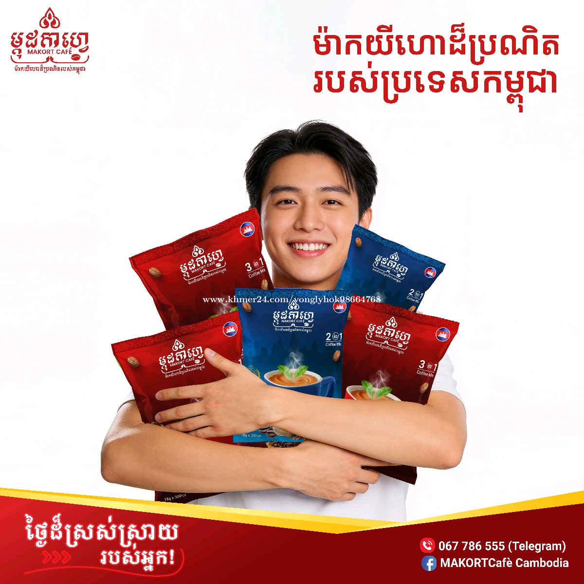 ចាប់ផ្តើមថ្ងៃថ្មីជាមួយ ម្កុដកាហ្វេ🌞☕ (ផលិតផលកូនខ្មែរ១០០%) (រសជាតិ ដិត) -------------------------- 📦 កញ្ចប់តូច 🎒 ងាយយកតាមខ្លួន ☕ រសជាតិឆ្ងាញ់ គុណភាពល្អ ⭐តម្លៃសមរម្យ -------------------------- ទំនាក់ទំនងចែកចាយបន្ត៖ ☎️0964141xxxClick To Call ( ផ្នែកលក់ ) ☎️067786xxxClick To Call ☎️0973377xxxClick To Call #morning #coffee #MAKORTCafé #cambodiaproduct #ផលិតផលកូនខ្មែរ