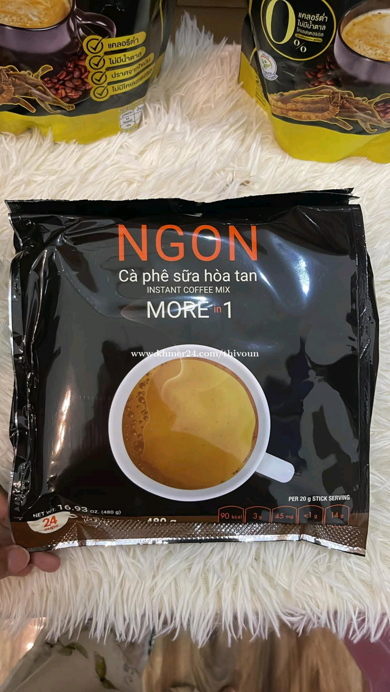 កាហ្វេ NGON MORE ni 1 មានលក់ពេញទីផ្សារកម្ជុជាស្រាប់😘 ផលិតផល ប្រទេសវៀតណាម❤️ 1កញ្ចប់ធំតម្លៃ20000៛ មាន60កញ្ចប់តូច😘សម្រាប់បងៗយកទៅពិសារឺលក់បន្ដ ចំណេញច្រេីន 3កញ្ជប់ហ្រ្វីដឹកជូន😘 បញ្ជាក់:ផលិតផលមានគុណភាពខ្ពស់💗