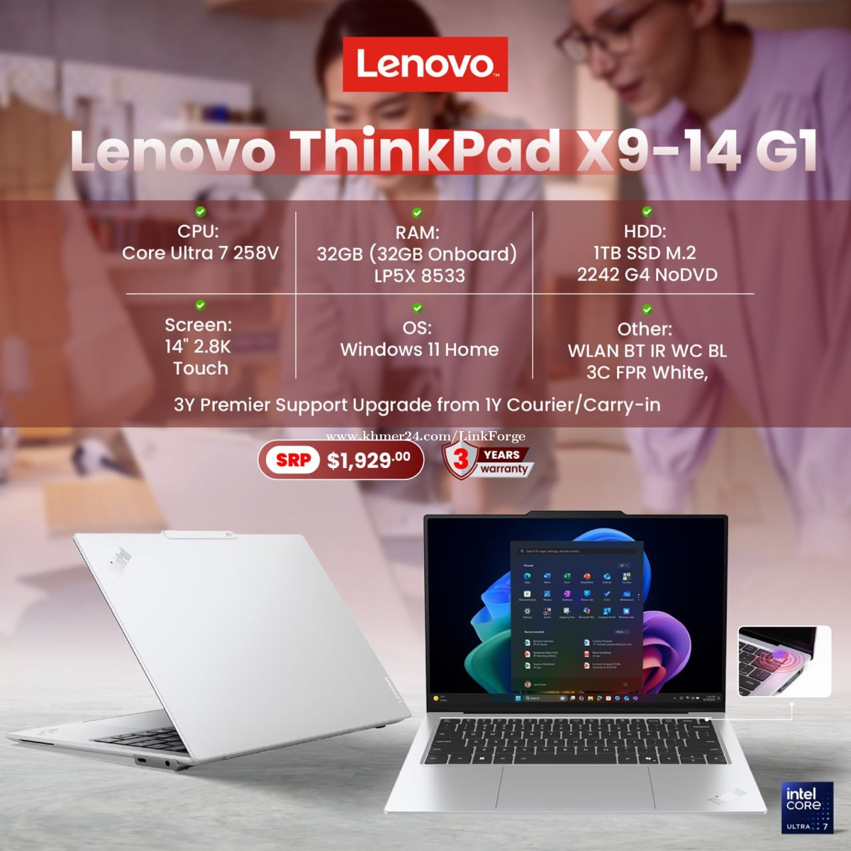 កុំព្យូទ័រយួរដៃដែលឈានមុខគេក្នុងយុគសម័យ AI! 🚀 Lenovo ThinkPad X9-14 G1! ⚡️ Intel AI Chipset: កម្លាំងខ្លាំង និងមានល្បឿនលឿនដែលមិនធ្លាប់មានពីមុនមក 💎Aura Edition Design: រូបរាងស្រស់ស្អាត ស្ដើង ស្រាល 🌐 Copilot+ PC Ready: ត្រៀមខ្លួនជាមួយនឹងប៊ូតុងជំនួយការ AI ក្នុងមួយចុច ដែលធ្វើឱ្យកិច្ចការងាររបស់អ្នកកាន់តែរលូន (Smooth) និងមានប្រសិទ្ធភាពខ្ពស់។