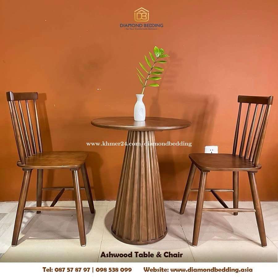 កៅអីឈើសុទ្ធ ខ្នងបង្អួច ពណ៏ឈើក្រម៉ៅ