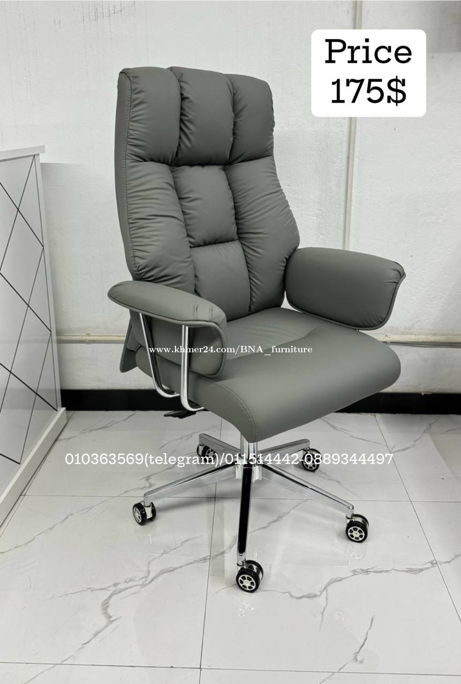 កៅអីវឹលបុគ្គលឹក Price: 175$ - កម្មង់03 ឡើងមានតម្លៃពិសេសជូន+ 𝚏𝚛𝚎𝚎ដឹកក្នុងក្រុងភ្នំពេញ -​អាចមក Check មើលគុណភាពផ្ទាល់សិនក៏បាន (ឈូកវ៉ាII) __________________________ មានលក់សម្ភារៈការិយាល័យជាច្រើនមុខ 📲 010363xxxClick To Call(𝚝𝚎𝚕𝚎𝚐𝚛𝚊𝚖)/ https://t.me/C_Brosna86 ☎️011514xxxClick To Call|0889344xxxClick To Call|098505xxxClick To Call 📍 ទតាំង៖ជួរផ្លូវរថភ្លើង ឈូកវ៉ា2 ខណ្ឌពោធិសែនជ័យ, ភ្នំពេញ - Chanel telegram: https://t.me/BNA_furniture - Khmer24: https://www.khmer24.com/BNA_furniture