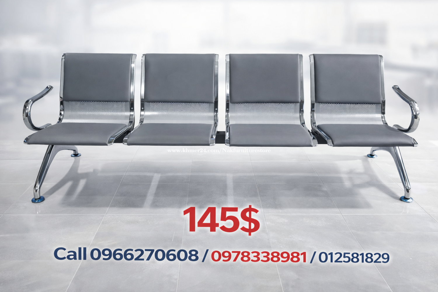 🔥 កៅអីរង់ចាំ 4 កៅអី | METAL BENCH គុណភាពខ្ពស់ 🔥 រឹងមាំ • ទំនើប • អង្គុយស្រួល • មើលថ្លៃថ្នូរ 💺 4 Seats Waiting Chair 💰 តម្លៃពិសេស 145$ ✅ ដែកអ៊ីណុក មិនច្រេះ មិនកោង ✅ ខ្នើយ + Mesh ខ្យល់ចេញចូលល្អ អង្គុយមិនឈឺខ្នង ✅ មានដៃទ្រង់ទ្រាយស្អាត សុវត្ថិភាព ✅ សាកសមសម្រាប់ 🏥 មន្ទីរពេទ្យ | 🏦 ធនាគារ | 🏢 ការិយាល័យ | 🏬 ហាង | 🛫 កន្លែងរង់ចាំ 🎨 មានពណ៌ជ្រើសរើស: ប្រផេះ / ខ្មៅ / ខៀវ 📦 មានស្តុករួច 🚚 ដឹកជញ្ជូនលឿន (ភ្នំពេញ & ខេត្ត) 📞 Call: 𝟎𝟗𝟔𝟔𝟐𝟕𝟎𝟔𝟎𝟖 / 𝟎𝟗𝟕𝟖𝟑𝟑𝟖𝟗𝟖𝟏 / 𝟎𝟏𝟐𝟓𝟖𝟏𝟖𝟐𝟗 📲 Telegram: https://t.me/NAKFurnitureStore168 📢 Channel តម្លៃអីវ៉ាន់ដែលមានក្នុងហាង: 👉 https://t.me/NAKFURNITURESTORE