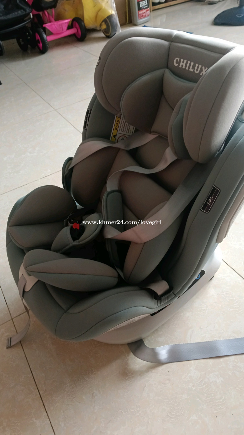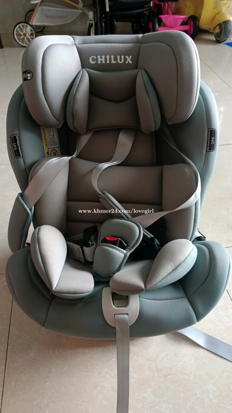 (Car Seat) ម៉ាក CHILUX។ វិធីប្រើប្រាស់ទូទៅ៖ 1. ដាក់កៅអីក្នុងឡាន អាចដាក់ឲ្យទារកអង្គុយប្រឈមទៅខាងមុខ ឬប្រឈមទៅខាងក្រោយ (អាស្រ័យលើអាយុ និងទំងន់កូន)។ ចំណុចសុវត្ថិភាពជានិច្ច៖ កូនអាយុតិចជាង 2 ឆ្នាំ គួរអង្គុយប្រឈមទៅខាងក្រោយ (rear-facing)។ ចាប់ពី 2–4 ឆ្នាំ ឡើងទៅ អាចប្រើប្រឈមទៅខាងមុខ (forward-facing)។ 2. ការចងកៅអី (Installation) ប្រើ ខ្សែសុវត្ថិភាពរថយន្ត (seat belt) ឬ ISOFIX (ប្រសិនបើឡានមាន) ដើម្បីចងកៅអីឲ្យជាប់នឹងអាងកៅអីឡាន។ ត្រូវចងឲ្យតឹង ពុំឲ្យកៅអីរំកិល។ 3. ការចងខ្សែសុវត្ថិភាពកូន (Harness) កៅអីនេះមានខ្សែ Harness 5 ចំណុច (5-point harness)។ ដាក់ខ្សែឲ្យឆ្លងតាមស្មា ទ្រូង និងរុំជុំវិញចុងជើង។ បិទត្រាប់នៅចំណុចកណ្តាល (buckle) ឲ្យបានសុវត្ថិភាព។ ត្រូវបង្រួមខ្សែឲ្យតឹងតែបន្តិច ដើម្បីកូនអង្គុយបានស្រួល ប៉ុន្តែមិនឲ្យខ្សែទូលាយពេក។ 4. កែតម្រូវកៅអីឲ្យសមនឹងកូន កម្ពស់ខ្សែអាចលៃតម្រូវបានតាមកម្ពស់ស្មាកូន។ មានខ្នើយបន្ថែមសម្រាប់ទារកតូច (អាចដកចេញពេលកូនធំឡើង)។ អាចប្ដូរទិសអង្គុយ និងកែតម្រូវកម្ពស់ខ្នើយក្បាល (headrest)។ 5. អាយុ និងទំងន់ដែលអាចប្រើបាន ប្រភេទនេះជាធម្មតាអាចប្រើបានចាប់ពី ទារក (ប្រហែល 0 ឆ្នាំ) រហូតដល់កុមារទំងន់ប្រហែល 25–36kg (អាស្រ័យលើម៉ូដែល