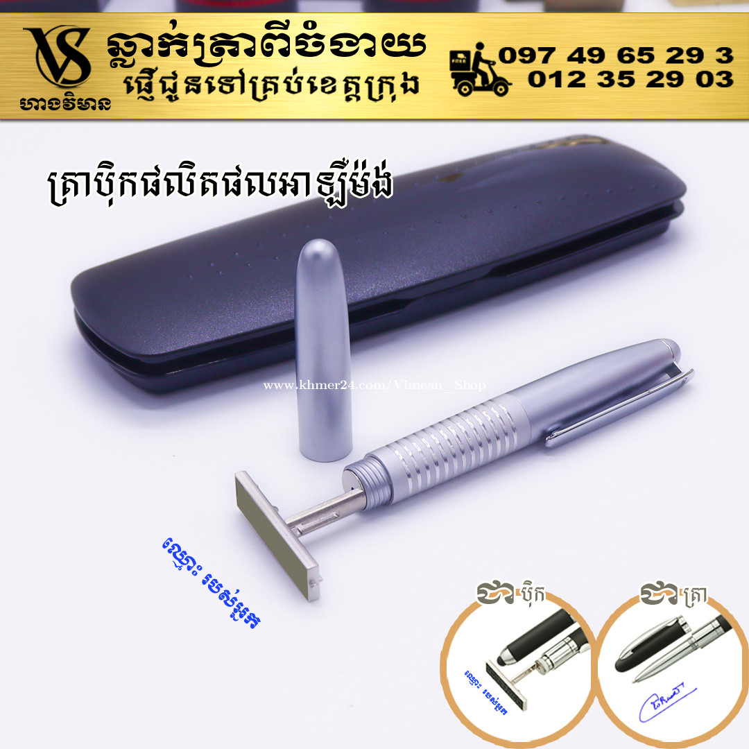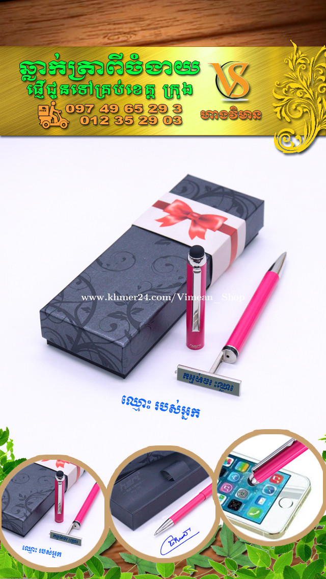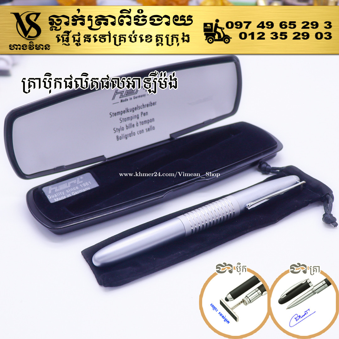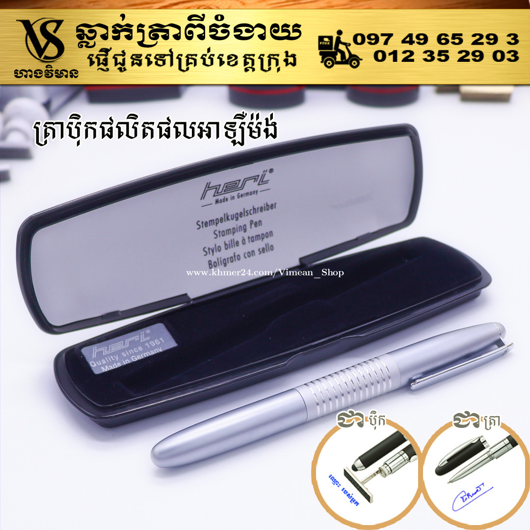 កំពុងស្វែងរកត្រាប្រើបានគ្រប់ទីកន្លែងមែនទេ? សូមសាកល្បង ប៉ិកម៉ាក heri ពីប្រទេសអាល្លឺម៉ង់ ដែលបំពេញបាន៣មុខងារនៅក្នុងប៉ិកតែមួយដើម៖ ជាប៉ិកសរសេរ ជាត្រា និងជាប្រដាប់ចុចអេក្រង់ស្មាតហ្វូន។ សមរម្យសម្រាប់អ្នកធ្វើដំណើរ ឬប្រើជាប្រចាំក្នុងការងារ! ឆ្លាក់ត្រាពីចំងាយនិងផ្ញើជូនគ្រប់ខេត្តក្រុង សាកសួរឬកុម៉្មង់តាមMessenger៖ http://m.me/stampmaking Tel : 089318xxxClick To Call (Cellcard) / 0882461xxxClick To Call (Metfone) / 093728xxxClick To Call (Smart) ផ្ទះG21 ផ្លូវGoody សង្កាត់ទឹកថ្លា ខណ្ឌសែនសុខ រាជធានីភ្នំពេញ( ក្នុងបូរីនៃផ្សាររតនាផ្លាហ្សា1 ឬ ម្តុំស្ពានអាកាសផ្សារដីហ៊ុយ ) ------------------ #pen #heri #penstamp ឆ្លាក់ត្រាឈ្មោះជាប់ប៊ិច ត្រាឈ្មោះជាប់ប៊ិច ធ្វើត្រាឈ្មោះជាប់ប៊ិច ផលិតត្រាឈ្មោះជាប់ប៊ិច បោះត្រាឈ្មោះជាប់ប៊ិច ត្រាឈ្មោះប៊ិចឯកជន ត្រាឈ្មោះប៊ិចក្រុមហ៊ុន ត្រាឈ្មោះជាប់ប៊ិចគ្រប់ប្រភេទ ត្រាឈ្មោះជាប់ប៊ិចអត្តសញ្ញាណ សេវាឆ្លាក់ត្រាឈ្មោះជាប់ប៊ិច