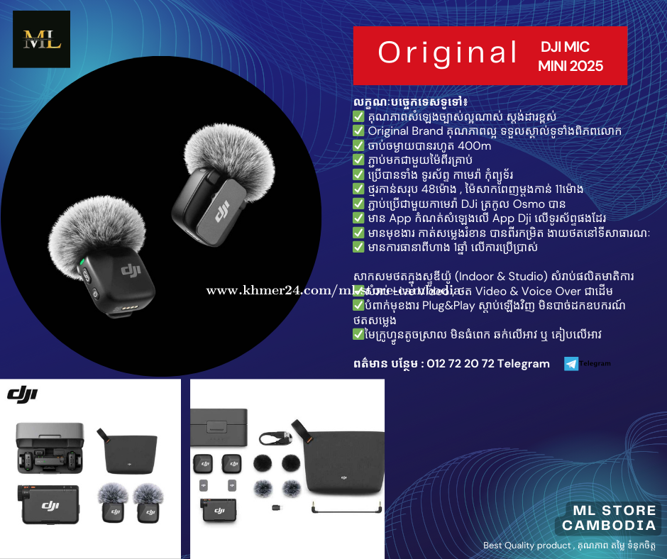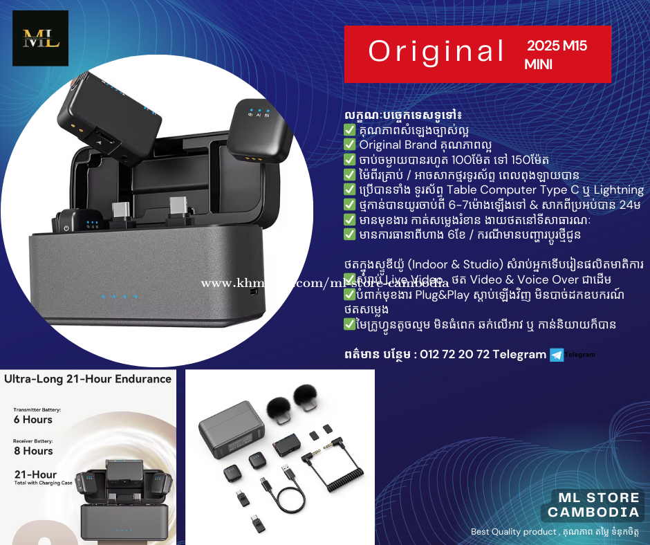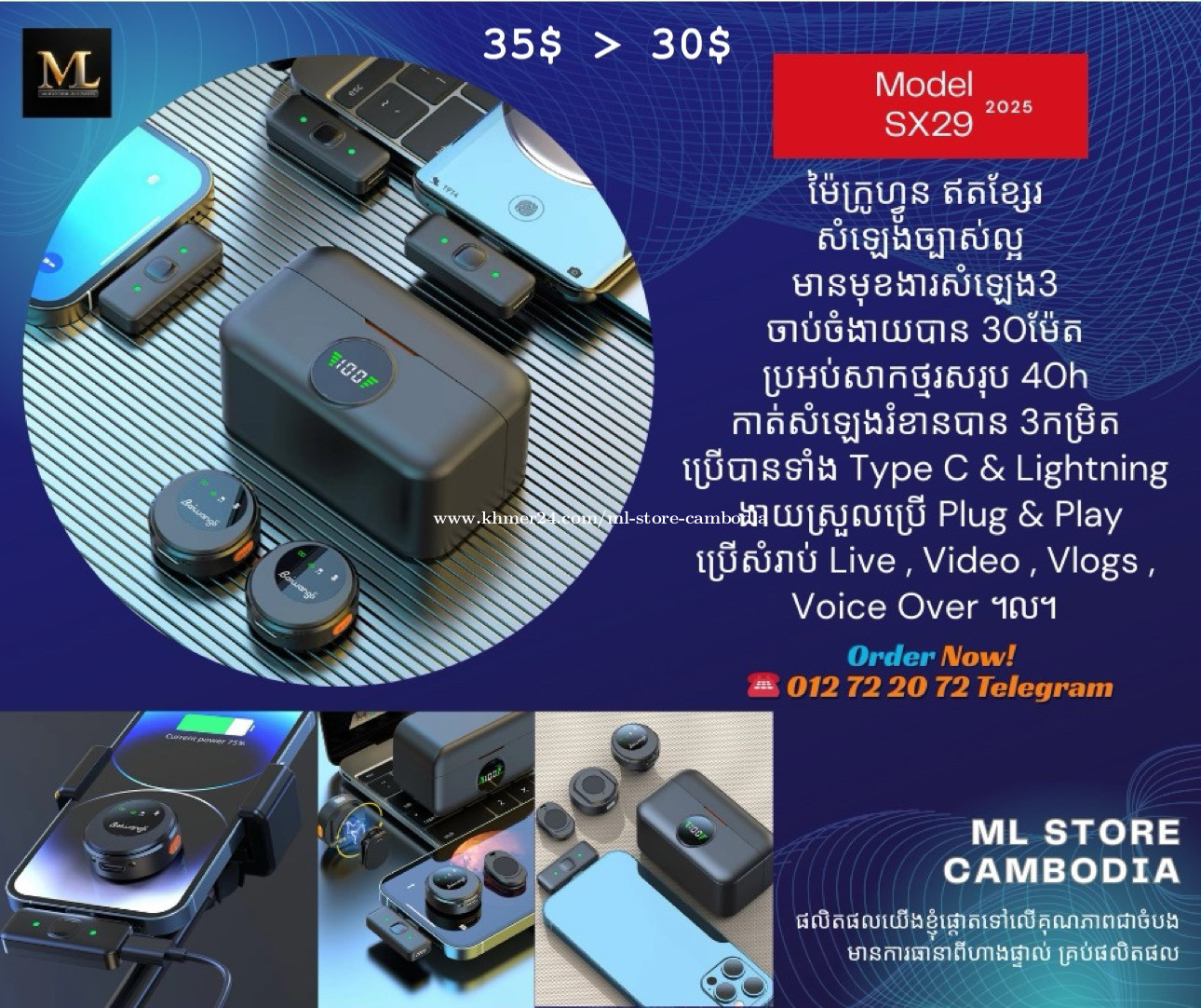 The Best Professional Wireless Microphone គុណភាពខ្ពស់ សំឡេងច្បាស់ល្អ មានមុខងារកាត់សំឡេងរំខាន អាចប្រើប្រាស់បានច្រើន លក្ខខណ្ឌខុសៗគ្នា សំរាប់បងប្អូន យកទៅបង្កើតមាតិកាវីដេអូ , Video Vlog , Live លក់ទំនិញអនឡាន , Podcast , Interview , Voice Over លើវីដេអូដើរកំសាន្តដែលថតទុកក៏បាន ៘ ( Original Product ) ✅ ច្រើនជម្រើស ច្រើនម៉ូឌែល តាមគុណភាព តាមតម្លៃ សុទ្ធតែល្អៗ ( ប្រើបានច្រើនជម្រើស ទាំងកាម៉េរា ទូរស័ព្ទ កុំព្យូទ័រ សោនកាត ៘ ) ✅ ផលិតផល មានការធានាត្រឹមត្រូវ មកតេស្តផ្ទាល់ក៏បាន 🚚 មានការដឹកជិញ្ជូន 25ខេត្ត/ក្រុង តេឡេក្រាម : https://t.me/Menghak168 Location : ម្តុំផ្សារហេងលី , ភ្នំពេញ ☎️ 012722xxxClick To Call / 070722xxxClick To Call