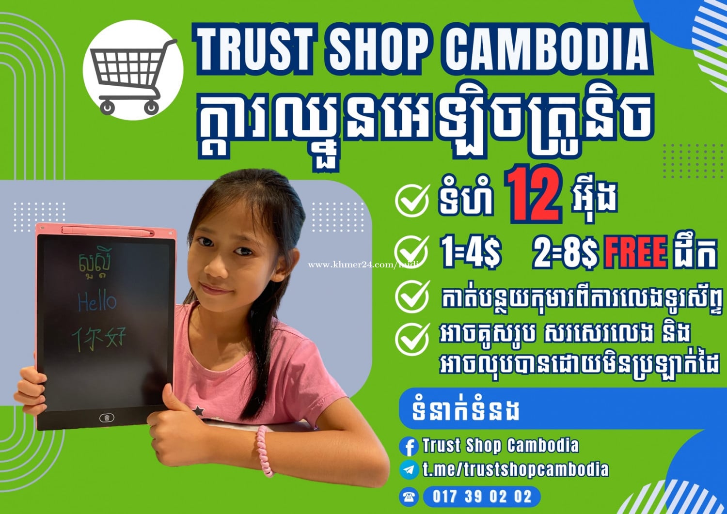 💥 ក្តារចុចអេឡិចត្រូនិចឆ្លាតវៃ ទំហំ 𝟭𝟮 អុីង 💥 𝟭=𝟰$, 𝟮=𝟴$ (𝗙𝗿𝗲𝗲 ដឹក 𝟮𝟱ខេត្តក្រុង) ✅ ជួយកាត់បន្ថយកុមារពីការលេងទូរស័ព្ទ ✅ អាចគូសរូប ឬសរសេរលេង និងអាចលុបបានដោយមិនប្រឡាក់ដៃ ☎️ 𝟬𝟭𝟳 𝟯𝟵 𝟬𝟮 𝟬𝟮 📱https://www.facebook.com/trustshopcambodiattc/ 📱 𝚃𝚎𝚕𝚎𝚐𝚛𝚊𝚖: https://t.me/trustshopcambodia
