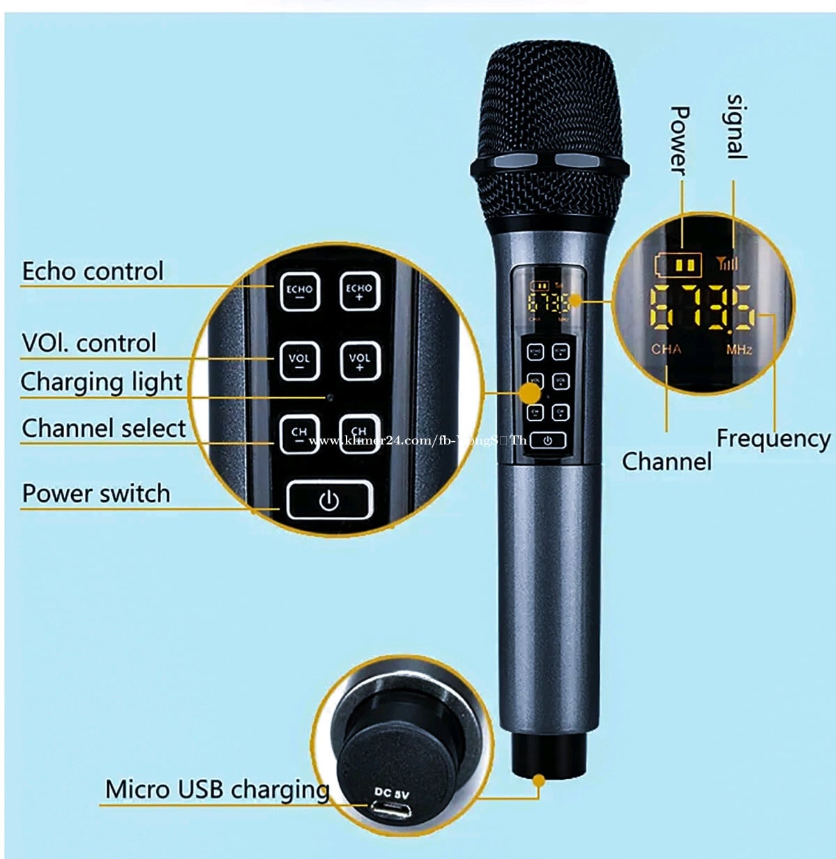 ក្បាលម៉ៃក្រូហ្វូន Wireless អាចប្រើបានគ្រប់ប្រភេទបាស់តូចធំគ្រប់ស៊េរី មានប៊ូតុងសម្រាប់ចុច ប្ដូរសំឡេងធ្ងន់ + សំឡេងស្រាល+ អេកូ + Bass + Bass - សម្រាប់ speaker ឬក៏បាស់ ដែលសារ៉េសំឡេងមិនបាន ប្រើតែប្រភេទនេះមួយ ច្រៀងបានម៉ាឆ្ងាញ់🎤🔥👍🏼