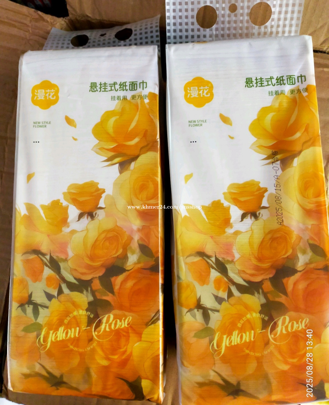 ក្រដាសជូតដៃ (មាន៤ស្រទាប់ ) ទំហំ128mmx 170mm Hand tissue (4layer) Size 128mmx 170mm 325draws (កញ្ចប់ពណ៌លឿង) ក្រដាសជូតដៃ (មាន៤ស្រទាប់ ) ផ្ទៃពណ៌ស 130mmx 175mm Hand tissue (4layer) Size 130mmx 175mm 250draws (កញ្ចប់ពណ៌ខៀវ)