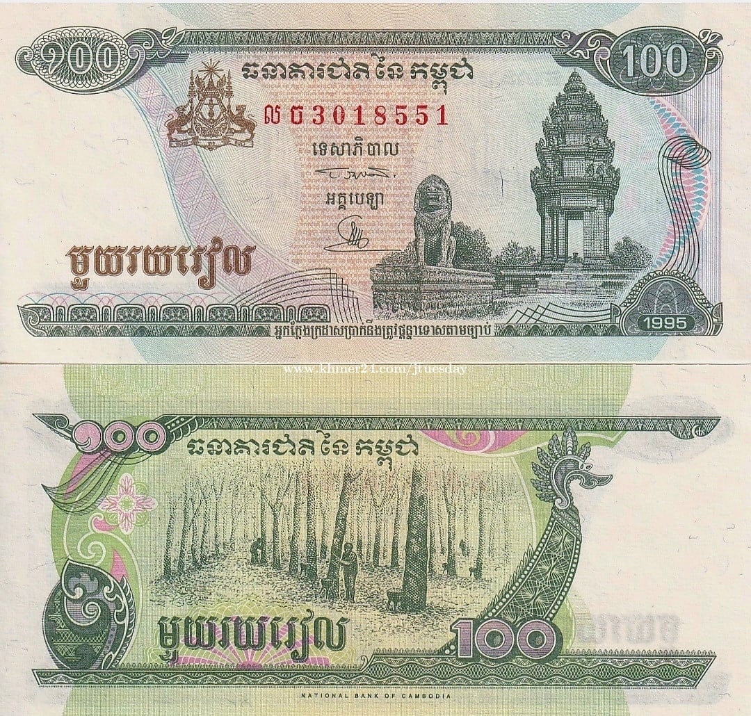 ក្រដាសប្រាក់ ១០០ រៀល -ឆ្នាំ ១៩៩៥ - សភាពថ្មី - សម្គាល់: លេខមាលា (លេខកូដក្រដាសប្រាក់ខុសពីរូបថត)