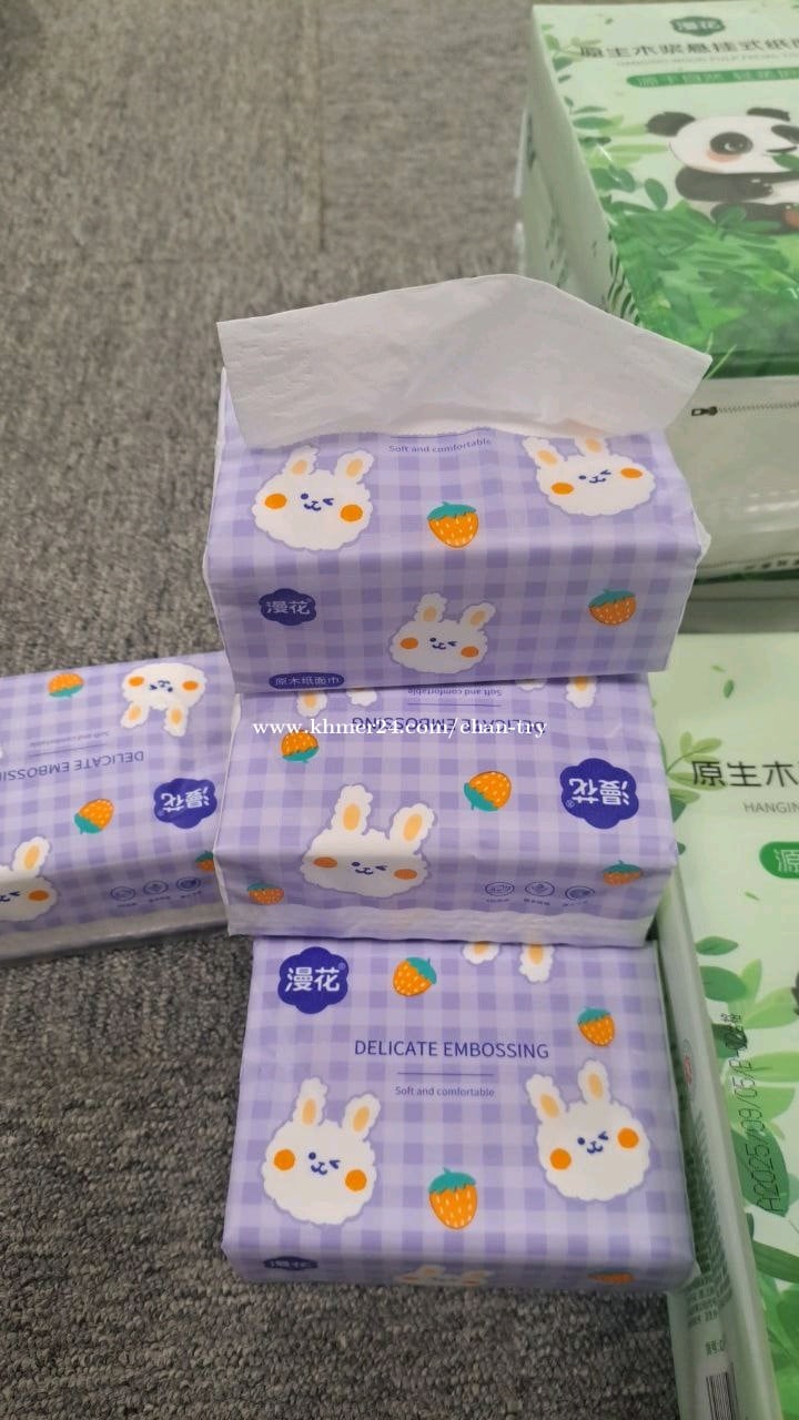ក្រដាសជូតមាត់ សាច់ក្រាស់ មួយសន្លឹកមាន5ស្រទាប់ 1កេសមាន10ដុំធំ freeទំពួកភ្យួរ3