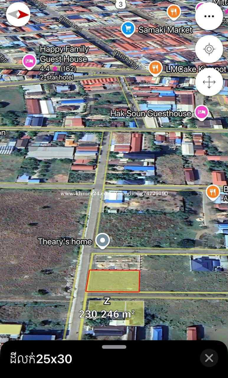 🌏ក្រុងកំពតដីលក់ធូរៗជិតផ្សារកំពតនិង 800mពីរង្វង់មូលធូរេន ☘️ទំហំដីជាក់ស្ដែង 25m x 28m ☘️ដីជាប់ផ្លូវកែងបេតុង 📜 ឯកសារ ប្លង់រឹង 💰តម្លៃលក់165,000$ ចរចារ ☘️ទីតាំងល្អណាស់ជិតផ្សារកំពត ស្ថិតនៅលេីផ្លូវរដ្ធអាចរកសុីបាន និងសង់ផ្ទះជួលឬផ្ទះរស់នៅ ⛳️ទីតាំងស្ថិតនៅភូមិក្រាំង សង្កាត់ក្រាំងអំពិល ក្រុងកំពត☎️060511xxxClick To Call,telegram016368xxxClick To Call https://t.me/+RS0mBK1UlXNmYjc1
