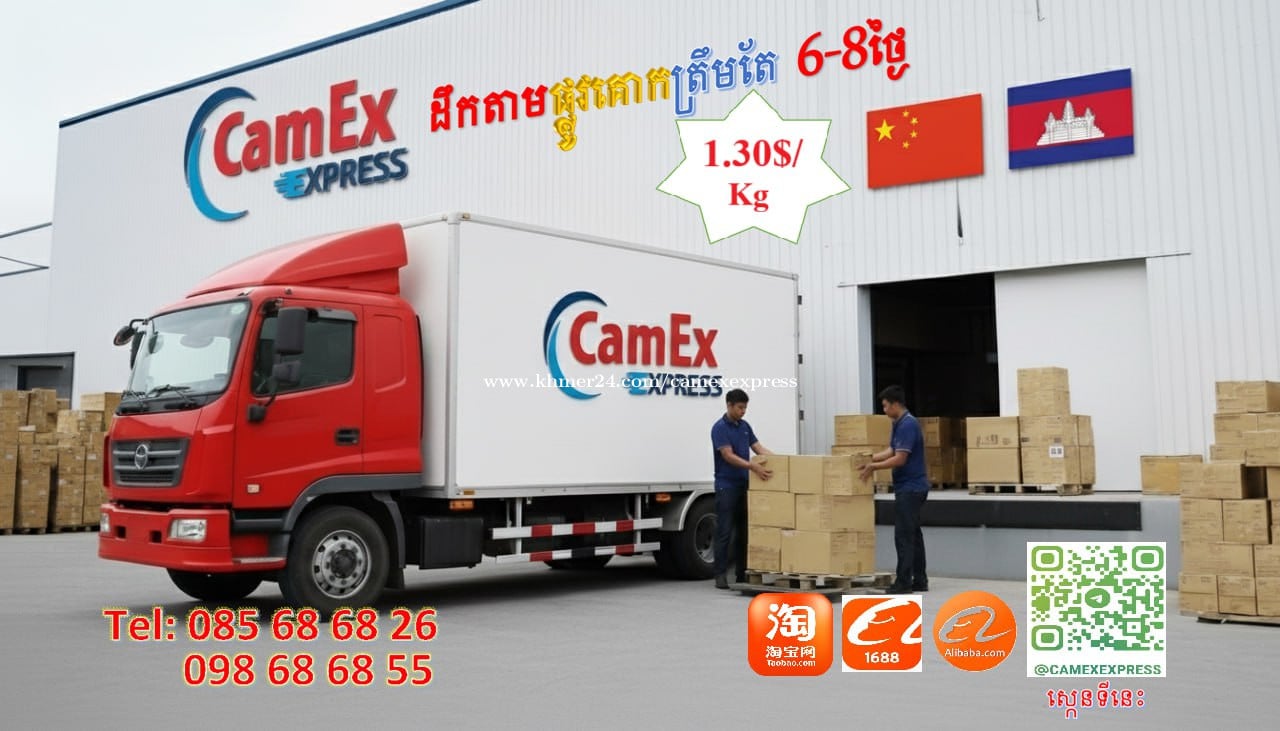 👉👉👉ខេមមិច អិចប្រេស (CamEx Express) មានទទួលសេវាកម្មផ្ញើ ពីប្រទេសចិន ទៅ ប្រទេសកម្ពុជា នឹងមានសេវាកម្មដឹកជញ្ជូនអិចប្រស នៅក្នុងក្រុងភ្នំពេញតម្លៃត្រឹមតែ១ដុល្លាតែប៉ុណ្ណោះ 👉👉👉CamEx Express ជាសេវាកម្មដឹកជញ្ចូនត្រឹមតែ១ដុល្លាតែប៉ុណ្ណោះ ពួកយើងទៅយកទំនិញដល់ទីតាំងនឹងដឹកជូនអតិថិជនភ្លាមៗ។ 👉👉👉សំរាប់ពត៌មានលំអិតសូមទាក់ទងមកលេខ 🇰🇭 : 085686xxxClick To Call / 098686xxxClick To Call , តេលេក្រាមលេខ : 085686xxxClick To Call លីងតេលេក្រាម: https://t.me/camex_express ទីតាំង: https://maps.app.goo.gl/dLAbtFSNSaPupSjd9 FB Page: https://www.facebook.com/camexpresss អាស័យដ្ឋានផ្ទះលេខ២២ផ្លូវ58P, ភូមិដីថ្មី, សង្កាត់គោកឃ្លាង, ខ័ណ្ឌសែនសុខ, រាជធានីភ្នំពេញ។