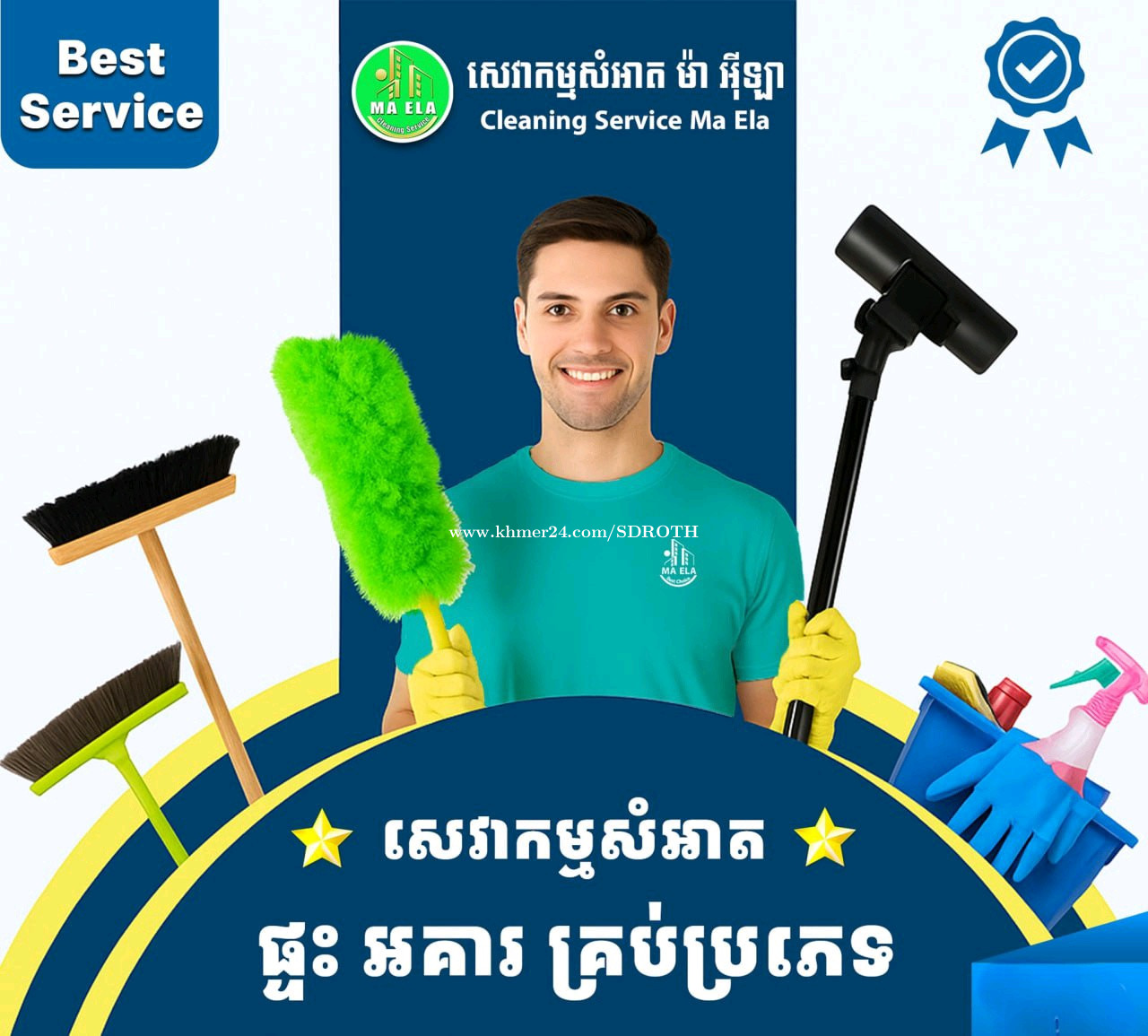 🔴 ក្រុមហ៊ុន MA ELA យើងខ្ញុំផ្ដល់សេវាកម្មដូចជា: ✅ សម្អាតកញ្ចក់អាគារខ្ពស់ៗ (High-rise Cleaning) ✅ សេវាសម្អាតលំអិត (Deep Cleaning) ✅ កំចាត់សត្វកណ្ដៀរ (Termite Control) ✅ កំចាត់សត្វល្អិតផ្សេងៗ (Pest Control) ✅ ប្រព័ន្ធការពារកណ្ដៀរត្រៀមការសាងសង់ (Termite Pipe System) ✅ បុគ្គលិកសម្អាតប្រចាំការ (Standby Cleaner) 🛡 សុវត្ថិភាព | ប្រសិទ្ធភាព | តម្លៃសមរម្យ | ត្រួតពិនិត្យឥតគិតថ្លៃ 📱 085368xxxClick To Call / 093667xxxClick To Call 📨 http://t.me/Sokhom_Daroth