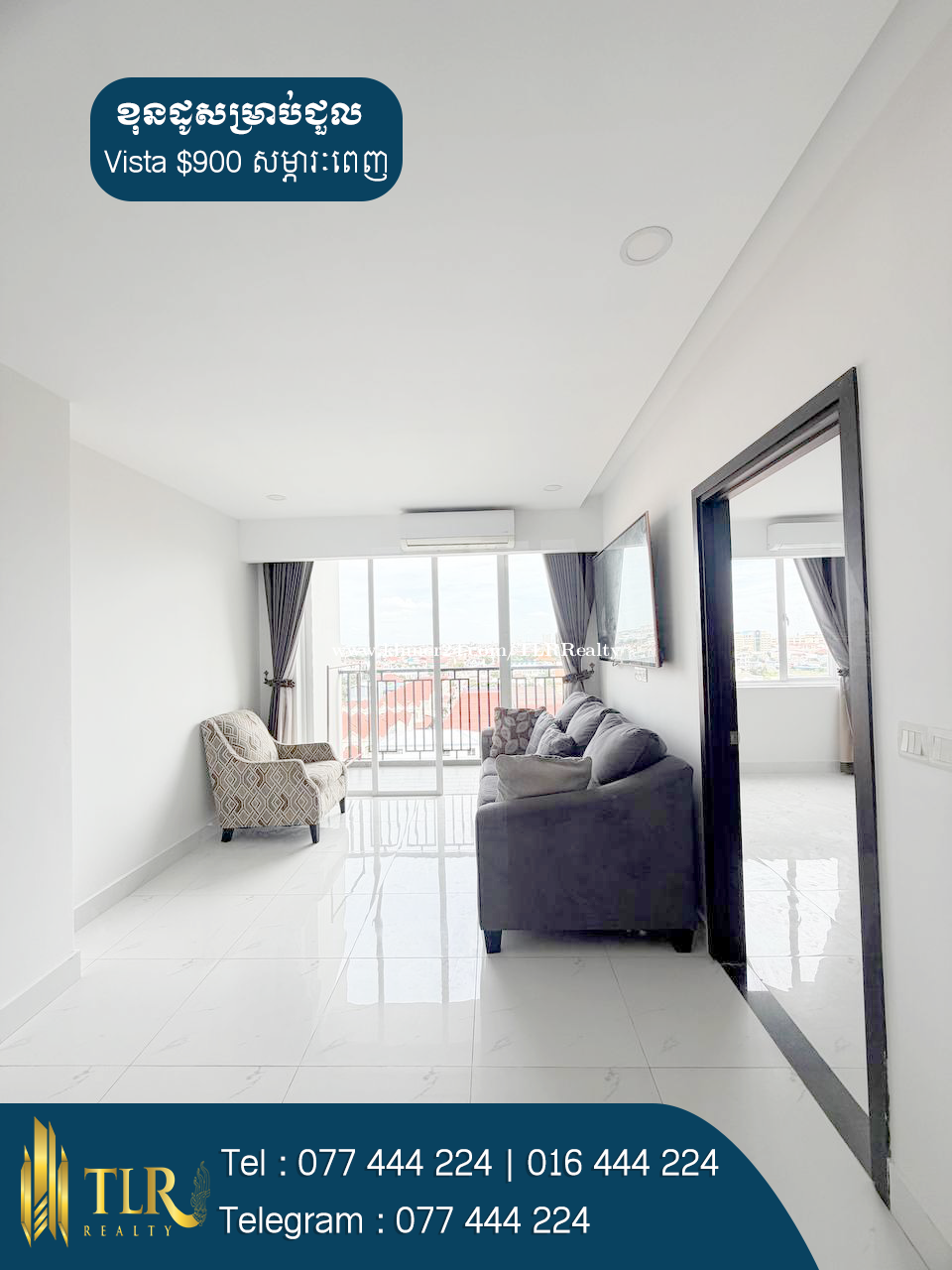 🌃ខុនដូសម្រាប់ជួល | Condo for Rent 💲តម្លៃជួល | Price Rent : $900 ចរចា - សម្ភារ | Furniture : Fully Furnished - ទំហំខុនដូ | Condo Size : 106.60 sqm - បន្ទប់គេង | Bedroom : 2 - បន្ទប់ទឹក | Bathroom : 2 📍ទីតាំងស្ថិតនៅក្នុង អគារVista Condo សង្កាត់ឬស្សីកែវ ខណ្ឌឬស្សីកែវ រាជធានីភ្នំពេញ | Location Vista Condo Phnom Penh. # អត្តលេខអាជ្ញាប័ណ្ណ : E-24-449 📞 Cellcard : 077444xxxClick To Call 📞 Smart : 016444xxxClick To Call 📞 Metfone : 066444xxxClick To Call 📱 Telegram : 077444xxxClick To Call 📱 Channel telegram : https://t.me/RithyTLR
