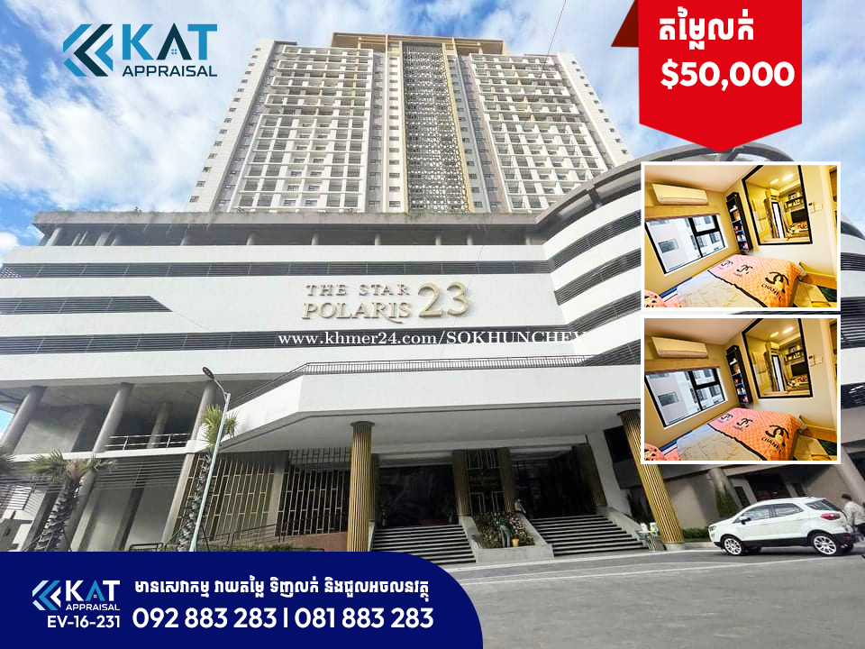 ខុនដូសម្រាប់លក់/ Condo For Sale - អាគារAជាន់ទី21/ 21th Floor @Polaris Ph23 _ អាចមើលឃើញកោះនរា/ View to River Koh Norea and Koh Pich City - តម្លៃ| Price: $50,000 ចរចា - បន្ទប់/Room Size: 30m2 - បន្ទប់គេង/ Bedroom: 01 - បន្ទប់ទឹក / Bathroom: 01 - ឯកសារ/ Document: ផ្ទេរឈ្មោះត្រឹមបុរី - គ្រឿងសង្ហារឹមពេញ/ Fully Furnished * (អាចបង់រុំលោះបន្ដបាន) -ទីតាំង/ Location: បុរីប៉េងហួតបឹងស្នោ ខណ្ឌច្បារអំពៅ, រាជធានីភ្នំពេញ។ Tel: 092883xxxClick To Call l 081883xxxClick To Call Telegram Chat : https://t.me/katappraisalsupport Telegram Channel : https://t.me/KAT_APPRAISAL
