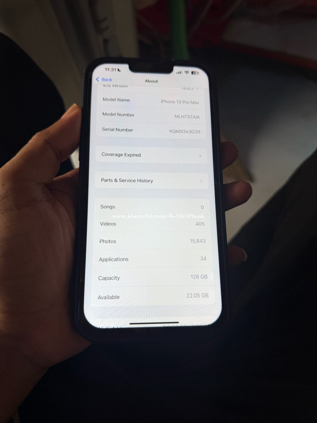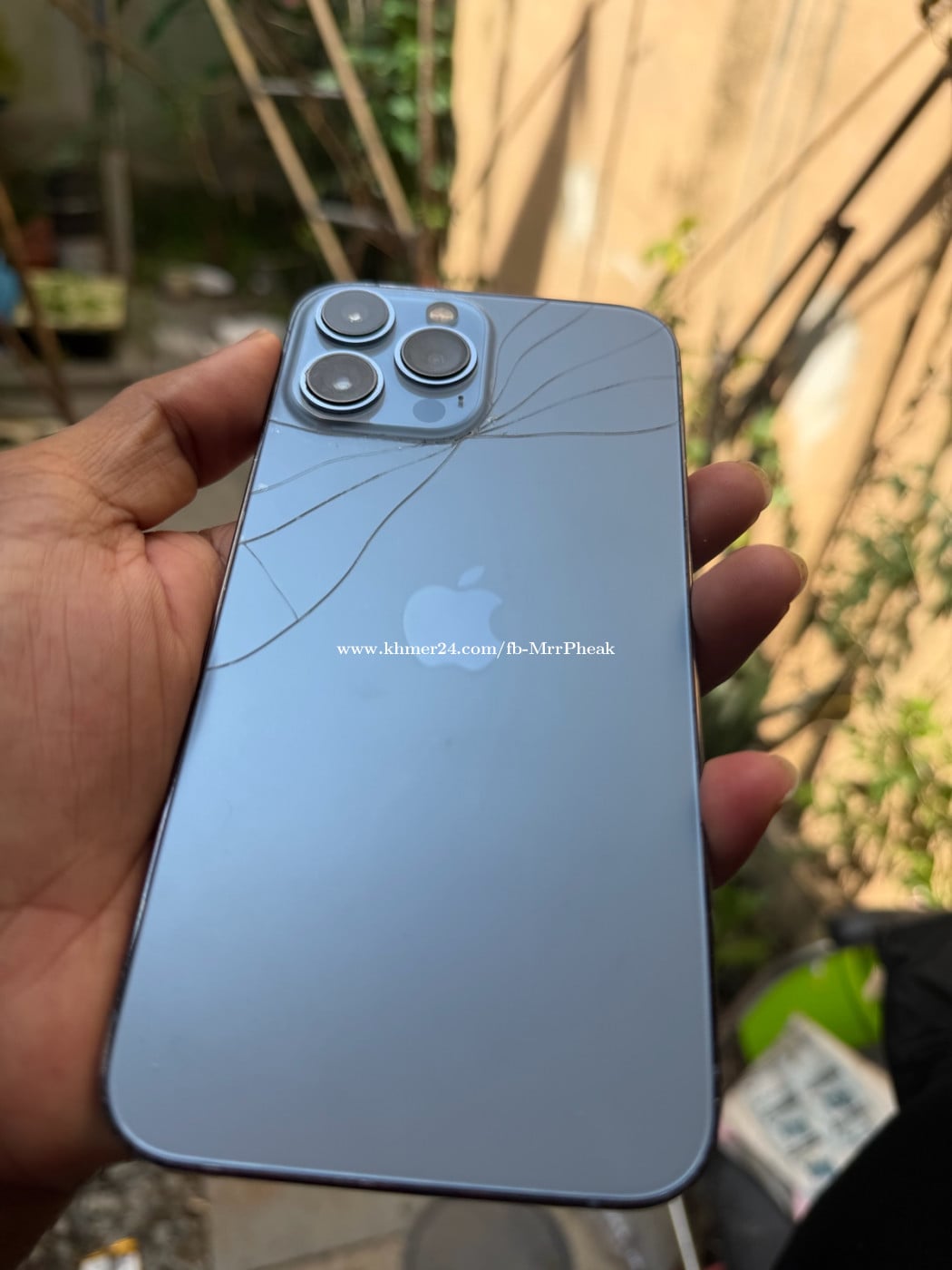 ខ្ញុំចង់លក់ iPhone 13 Pro Max 290$ មានប្រអប់ បែកខ្នងក្រោយ ប្រើស៊ីម2 Cameraស្អាត មានស្កេនមុខ អេក្រង់ថ្មី