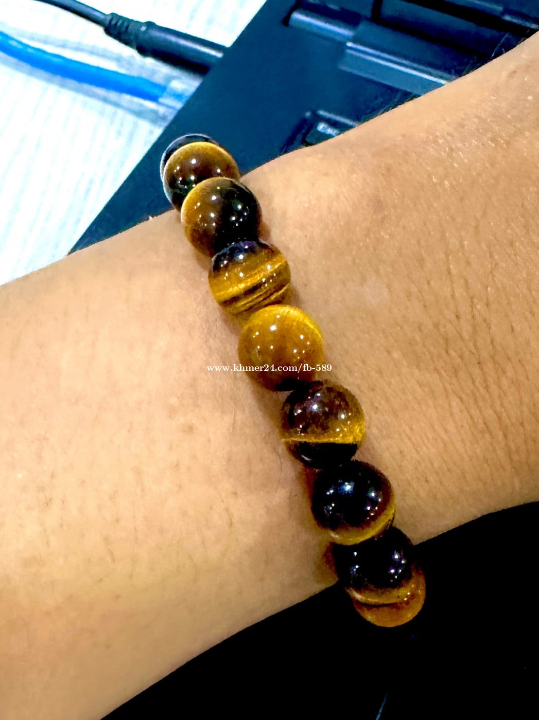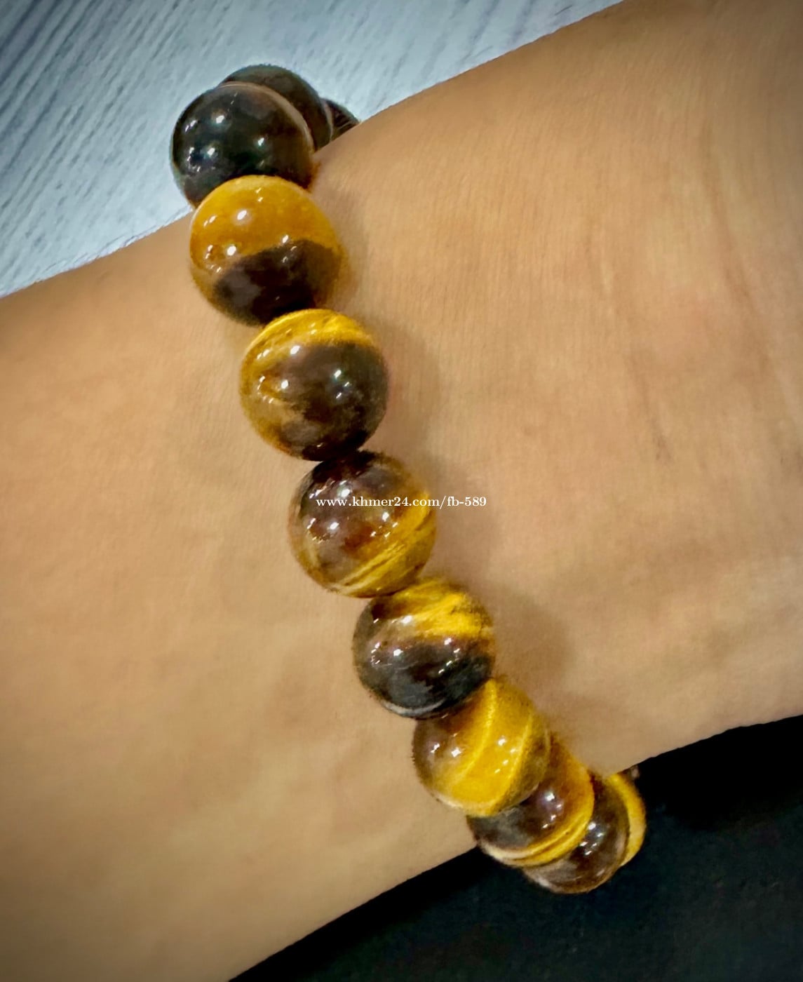 ខ្សែដៃអង្កាំបុរសធ្វេីពីថ្មធម្មជាតិ ទំហំ 10mm Natural stone Tiger eye
