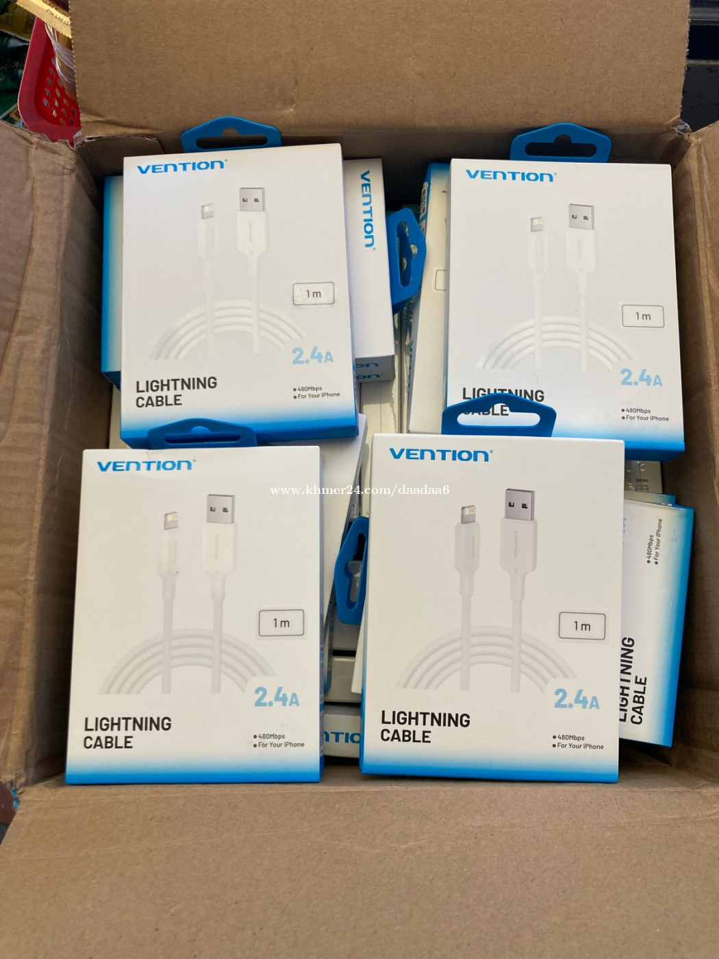 ខ្សែសាកiPhone ប្រើបានទាំងសាកថ្ម និង បញ្ជូនទិន្នន័យ តម្លៃត្រឹមតែ20000រៀល Product brand: Vention Product name: Lightning data cable Product model: LAM Appearance color: White Interface information: USB-A male/Lightning male Interface technology: Nickel plated Transmission speed: 480Mbps Conductor material: Tinned copper Shell material:!PVC Line shielding: aluminum foil Cover material: PVC Line length: 1m Supply current: 2.4A (Max)