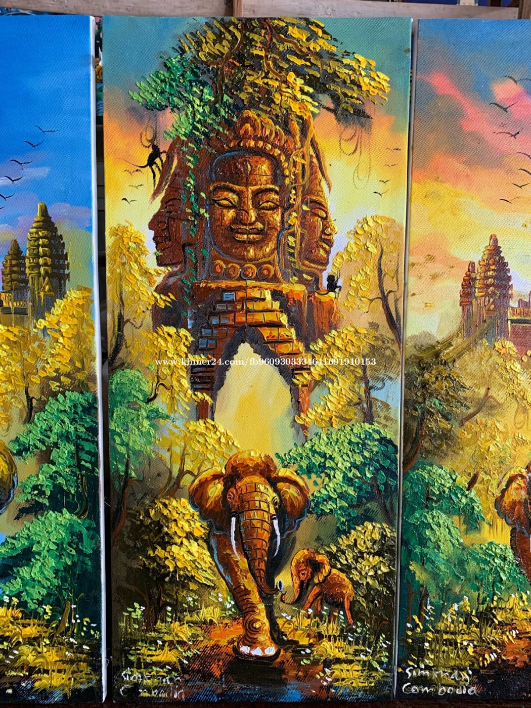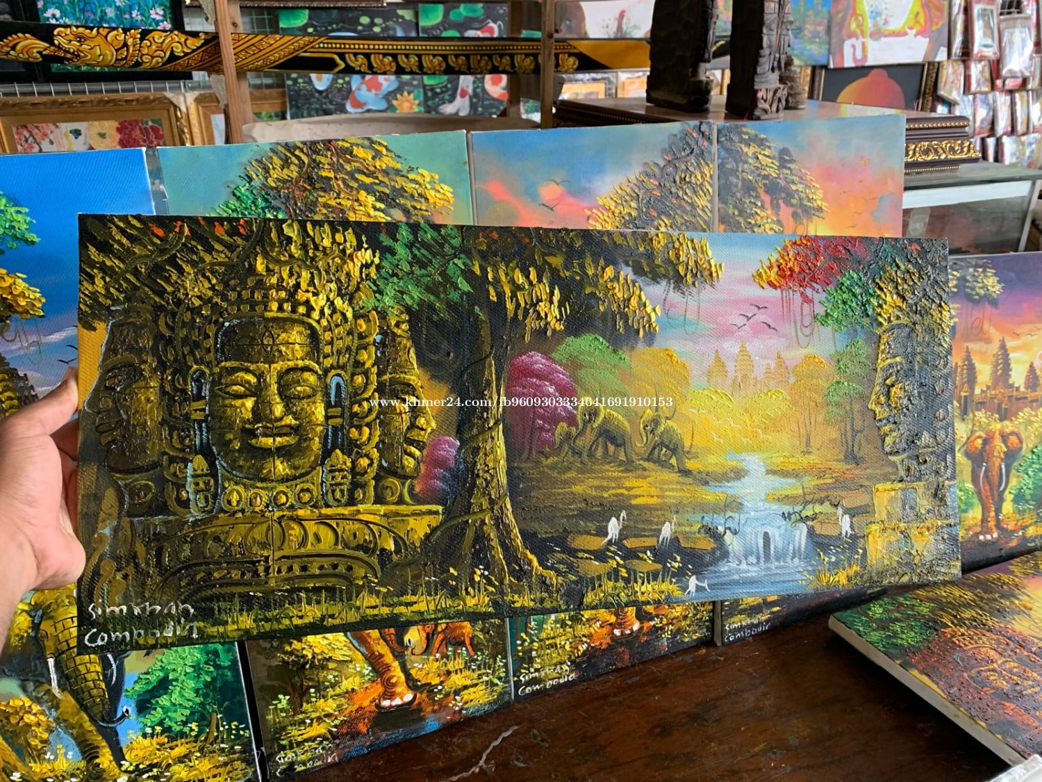 គំនូរពណ៌ប្រេងគូរដោយដៃទំហំ 40x80គឹតទាំងស៊ុម