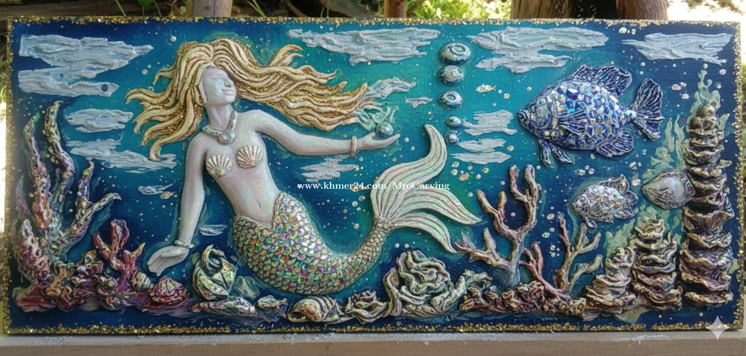 គំនូរ3D ផុសពីជញ្ជាំង នាតិមច្ឆានៅក្នុងបាតសមុទ្រ18× 45 3D relief mural #paint #gallery