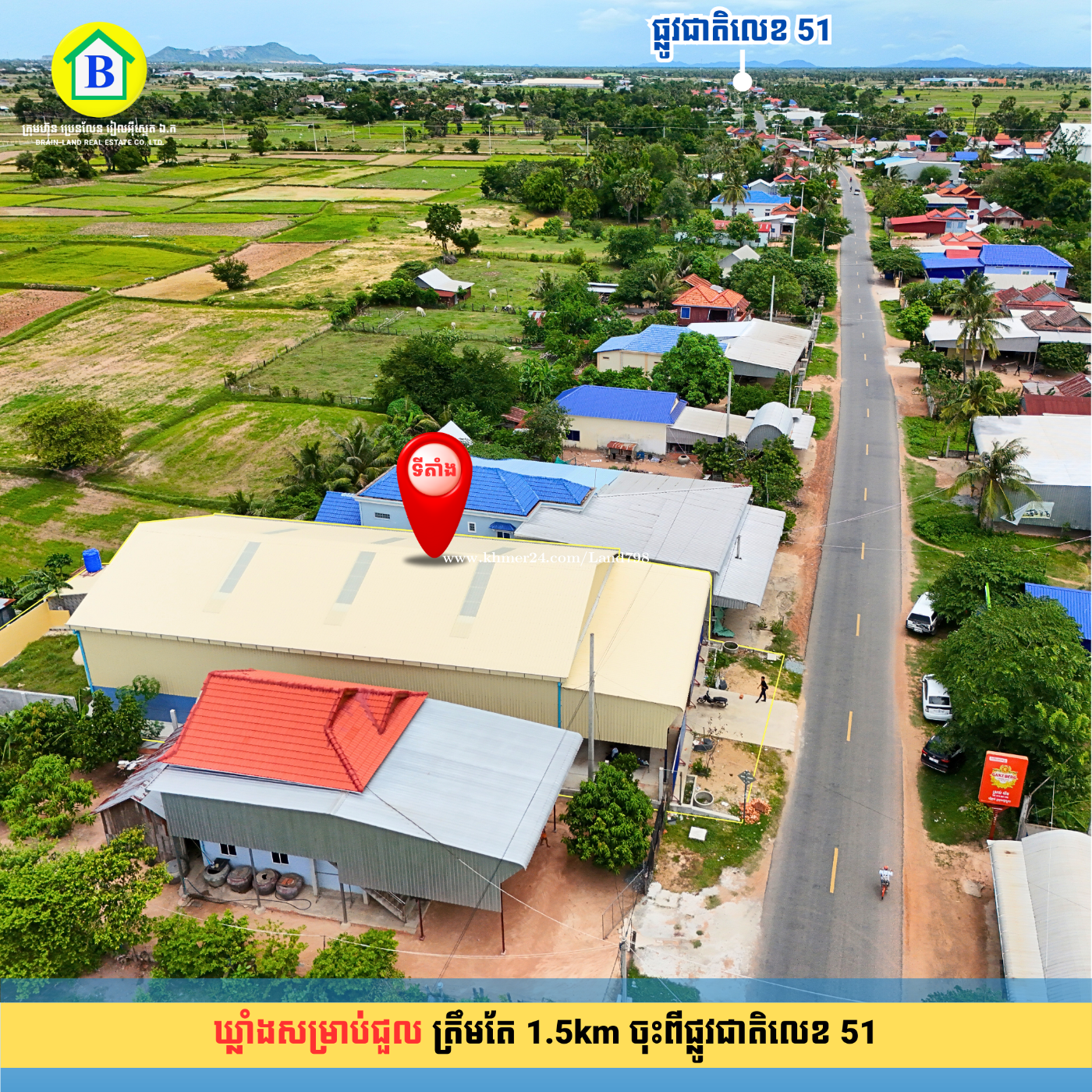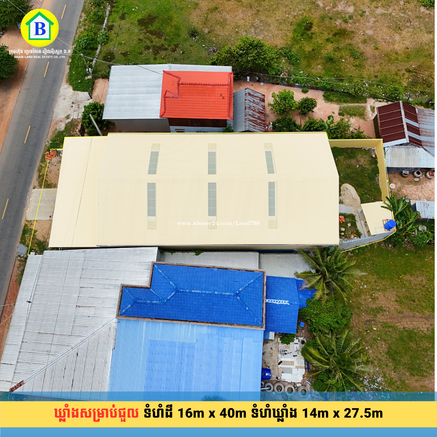 ឃ្លាំងជួល ខាងលិចភ្នំបាសិទ្ឋិ ទៅផ្លូវជាតិលេខ ៥១ លើផ្លូវកៅស៊ូ ១២ម៉ែត្រ Warehouse for rent at Phnom Basith to Road 51 *តម្លៃជួល / Rental Fee: $600/ខែ ចចារ . ទំហំដី / Land Size: 16 x 40m2 . ទំហំឃ្លាំង /Warehouse14 x27.5m . បន្ទប់ទឹក / Bathroom: 2 . មានឡៅតឿ 0 * អគ្គិសនី / Electricity: 64 A >> ទីតាំងឃ្លាំងជួល https://maps.app.goo.gl/2eMfKi6SNGa7ckeh9 💁សំរាប់ព័ត៌មានលំអិតផ្សេងៗ៖ 📲092765xxxClick To Call /Cellcard 📲0967000xxxClick To Call /Smart 📲098765xxxClick To Call /Smart -Telegram ផ្ទាល់ខ្លួន https://t.me/phanna798 -Telegram Channel https://t.me/Land798 -Facebook page https://web.facebook.com/Land798