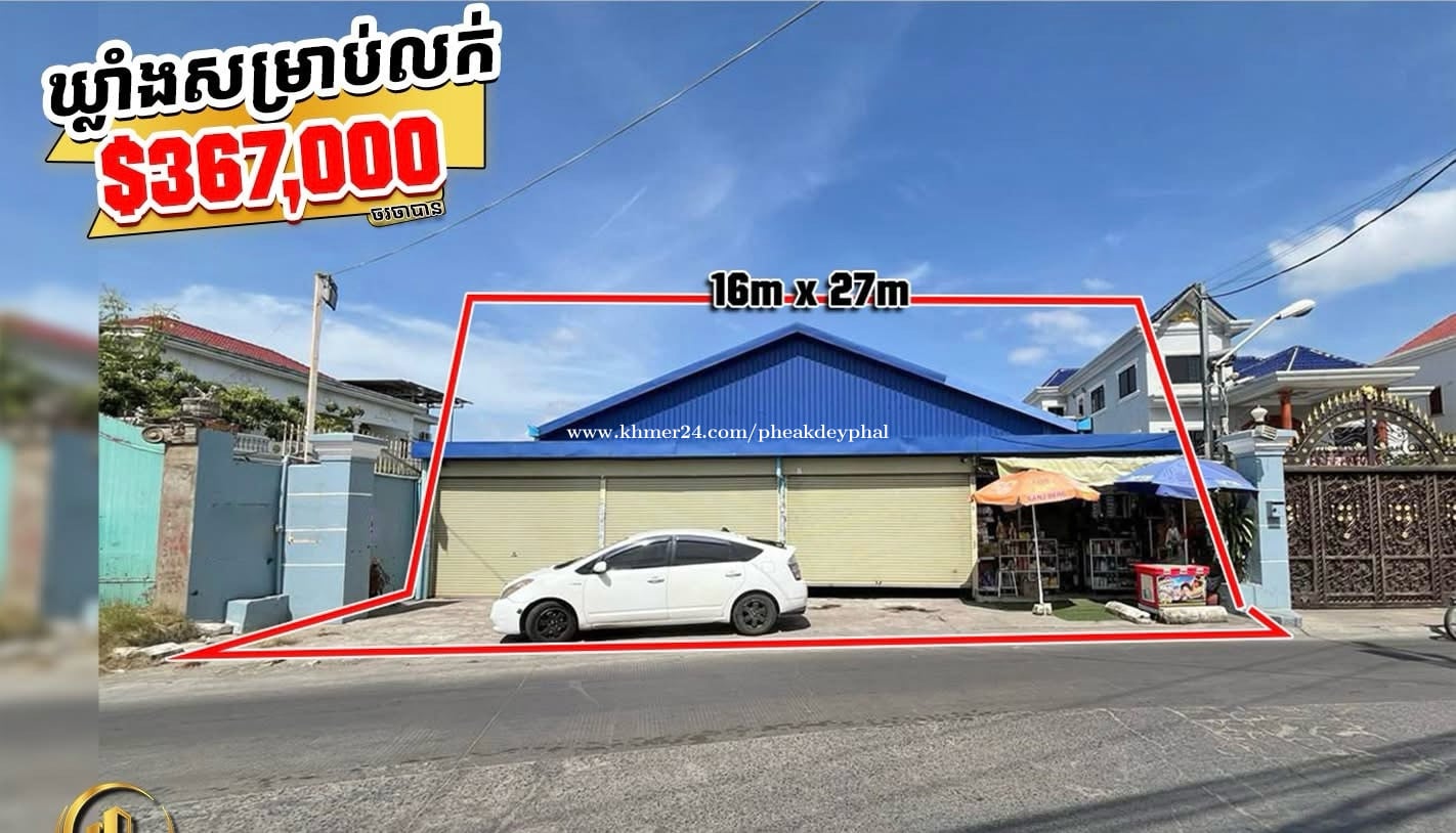 ឃ្លាំងសម្រាប់លក់ នៅជិតវត្តសំរោងអណ្ដែត ខណ្ឌសែនសុខ 💰តម្លៃលក់ ៖ $367,000 (ចរចាបាន) ⭐️ ផ្ទេរកម្មសិទ្ធិប្លង់រឹងជូន ⭐️ ទំហំដី: 16m x 27m (432m2) ⭐️ បន្ទប់គេង 1 បន្ទប់ទឹក 1 ⭐️ ទិសៈ ត្បូង ⭐️ មានចំណូលជួល $1000/ខែ 💁☎️ទំនាក់ទំនងព័ត៌មានបន្ថែម៖ 089577xxxClick To Call/016651xxxClick To Call https://t.me/phal_pheakdey_realtor
