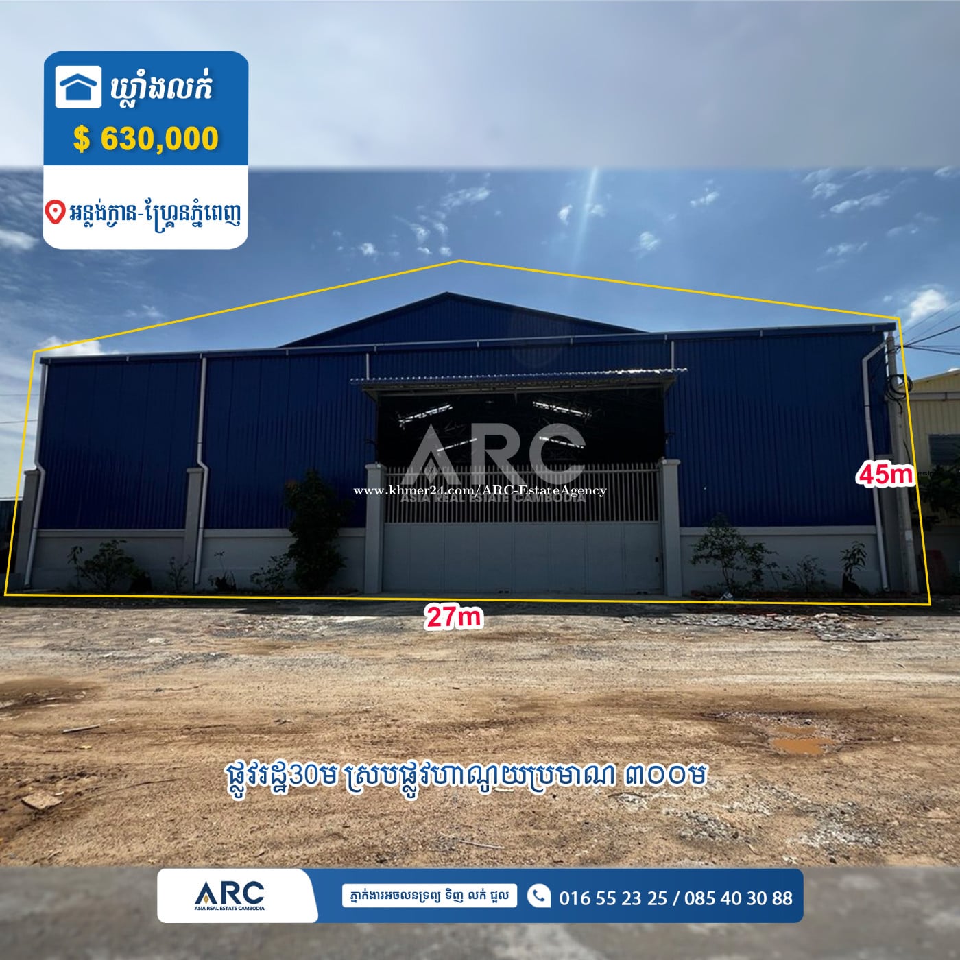 ឃ្លាំងលក់នៅអន្លង់ក្ងាន ក្បែរបុរីហ្គ្រែនភ្នំពេញ ផ្លូវហាណូយ ចម្ងាយ ៣០០ម ពីផ្លូវហាណូយ នឹង ៥០០មពីហ្គ្រែនភ្នំពេញ លើផ្លូវរដ្ឋ៣០ម 👉តម្លៃដើម: $699,000 ពេលចុះមក $ 630,000 ចារចា តម្លៃក្រោមទីផ្សារ 10ម៉ឺនដុល្លារ - ទំហំដី: 27m x 45m - ទំហំឃ្លាំង៖ 26m x 40m - ចំណូលជួលស្រាប់ $2,000/ខែ - ពត៌មានបន្ថែមសូមទំនាក់ទំនង: ☎️ 016552xxxClick To Call (smart) / 085403xxxClick To Call (cellcard) 👉 Chat: https://t.me/SynaSuy 👉Chanel: https://t.me/AsiaRealEstateCambodia 👉 Website: www.arc.com.kh 👉 អាជ្ញាប័ណ្ណលេខ៖ EV-08-069