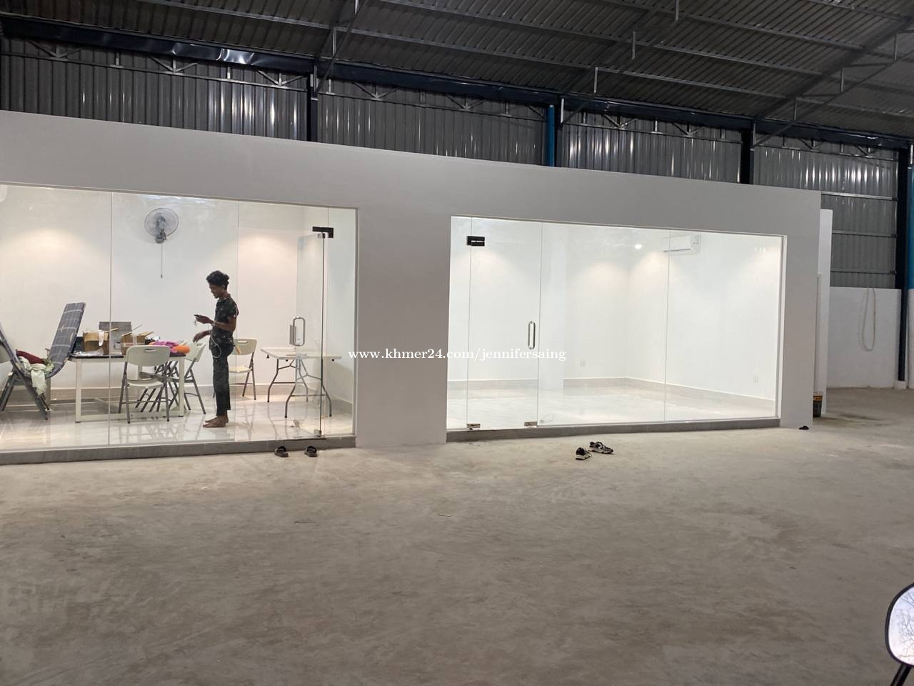 ឃ្លាំងលក់ ទំហំ665 ការេ មានបន្ទប់ office 2 បន្ទប់ទឹក1 បន្ទប់ ស្នាក់នៅមួយ