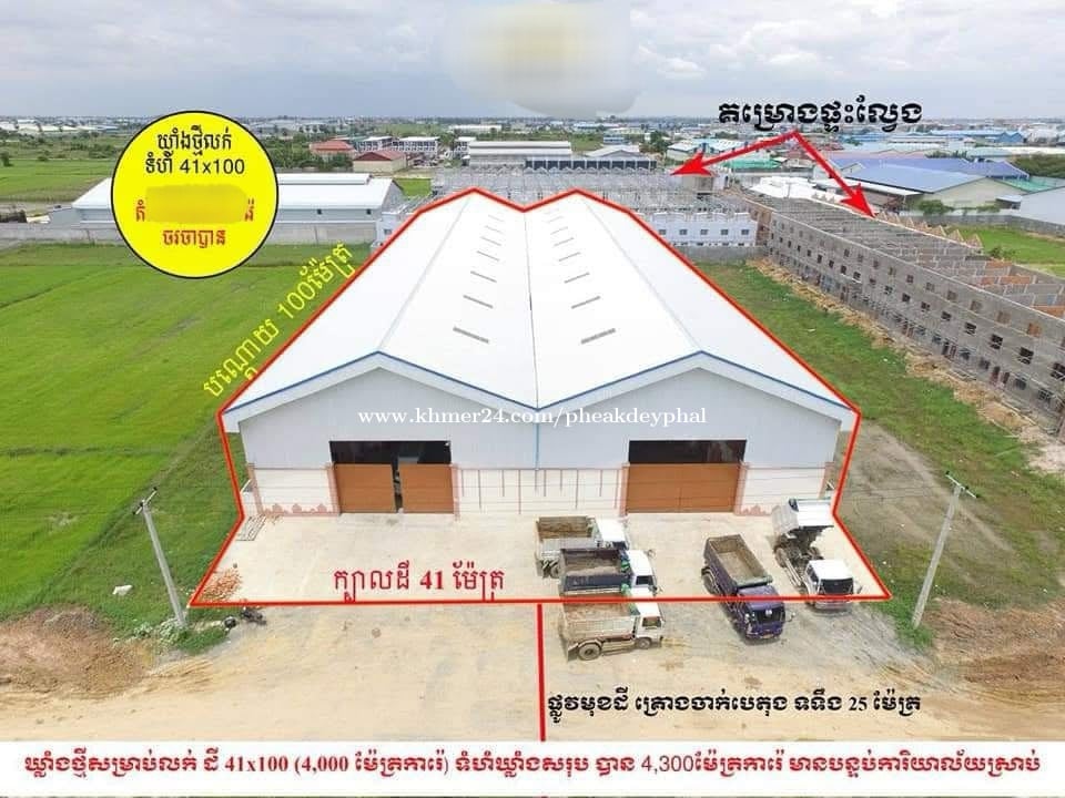 ‼️ឃ្លាំងសម្រាប់ជួល&លក់ ‼️ 📍 ទីតាំង: សង្កាត់ចោមចៅ ខណ្ឌពោធិសែនជ័យ • តម្លៃជួល៖ $8,000 / ខែ • តម្លៃ : 550$/m² ( ចរចា) • ទំហំដី៖ 41m x 100m • ទំហំឃ្លាំង៖ 4,300 m² • ការិយាល័យ៖ 2 ជាន់, 4 បន្ទប់ • បន្ទប់ទឹក៖ 6 • អគ្គិសនី៖ 63A / 3 Phase 🚚 អត្ថប្រយោជន៍សំខាន់៖ • ទីតាំងលើផ្លូវធំ ទូលាយ – អាចចូលដំណើរការទំនិញតាមកុងតឺន័រ និងឡានធំ • ជិតផ្លូវវេងស្រែង និងផ្លូវជាតិលេខ 3 • អាចប្រើសម្រាប់ផ្ទុកទំនិញ ឫ បើអាជីវកម្មផ្សេងៗបាន មិនជ្រាបទឹក, ស្ថិតនៅក្នុងតំបន់ងាយស្រួលក្នុងការដឹកជញ្ជូន។ Tel : 089577xxxClick To Call /016651xxxClick To Call https://t.me/phal_pheakdey_realtor