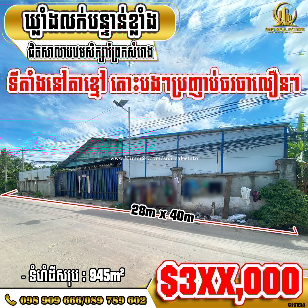 💁💁💥💥ឃ្លាំងសម្រាប់លក់ ចុះពីផ្លូវ21Aប្រហែល400m(ជិតសាលាបឋមសិក្សាព្រែកសំរោង) ក្រុងតាខ្មៅ (ID:D-0740) 💰💰💰តម្លៃលក់ ៖ $390,000 (ចរចាបាន) ⭐️ ផ្ទេរកម្មសិទ្ធិប្លង់រឹងជូន ⭐️ ទំហំដី ៖ 28m x 40m (945m2) ⭐️ ទិសៈ ជើង ✅✅ អត្តលេខក្រុមហ៊ុន៖ 𝐄-𝟐𝟓-𝟎𝟏𝟗 💁☎️ទំនាក់ទំនងព័ត៌មានបន្ថែម៖ 𝟎𝟕𝟎 𝟓𝟗𝟎 𝟔𝟔𝟔/ 𝟎𝟗𝟖 𝟗𝟎𝟗 𝟔𝟔𝟔/ 𝟎𝟖𝟗 𝟕𝟖𝟗 𝟔𝟎𝟐 ▶️𝐓𝐞𝐥𝐞𝐠𝐫𝐚𝐦: https://t.me/SN59988 ▶️𝐓𝐞𝐥𝐞𝐠𝐫𝐚𝐦: https://t.me/SN5_Real_Estate 💎💎 អចលនទ្រព្យល្អៗតំលៃក្រោមទីផ្សារ៖ https://t.me/SN58899 #SN5realestate #goodproperty #realestate #land