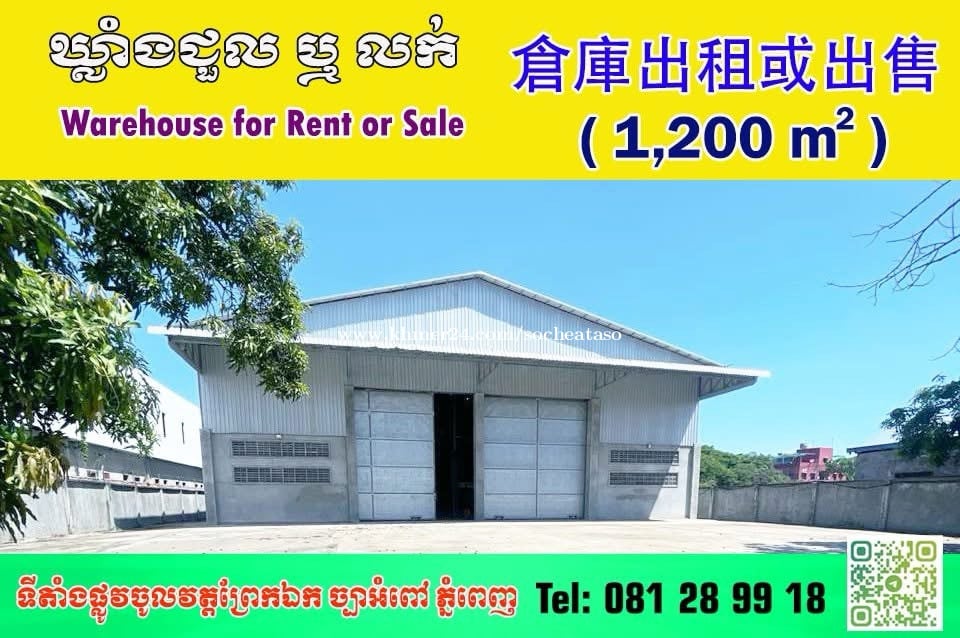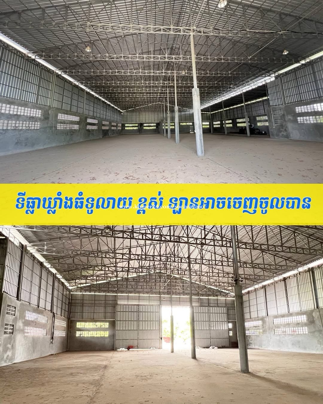 ឃ្លាំងសំរាប់ជួល ឬលក់ (បន្ទាន់) 倉庫出租或出售 (價格便宜) Warehouse for Rent or Sale - ជួល/Rent price = 2,000$/ខែចចារ - លក់/ Sale price = 355$/m2 ចចារ - ទំហំដី / Land size (35.5m x 80m) = (2831m2) - ទំហំឃ្លាំង / Warehouse (27m x 40m) - ចាក់សាបរូចពេញទំហំដី - មានទឹក ភ្លើង - ទីតាំងជាប់ផ្លូវប៉េតុងឡានកុទ័រន័រ អាចចេញចូលបាន - ទីតាំងធំទូលាយ សម្រាប់ធ្វើឃ្លាំង ស្តុកឥវ៉ាន់ ឬធ្វើសិប្បកម្ម សហគ្រាសផ្សេងៗ បាន 🕹ទីតាំងចូលតាមផ្លូវវត្តព្រែកឯក ខណ្ឌច្បាអំពៅ ភ្នំពេញ 👉Location: https://maps.google.com/maps?q=11.503917,104.981672&ll=11.503917,104.981672&z=16 ☎️ព័ត៌មានលំអិត សូមទាក់ទងតាម Telegram: 081289xxxClick To Call / 090555xxxClick To Call